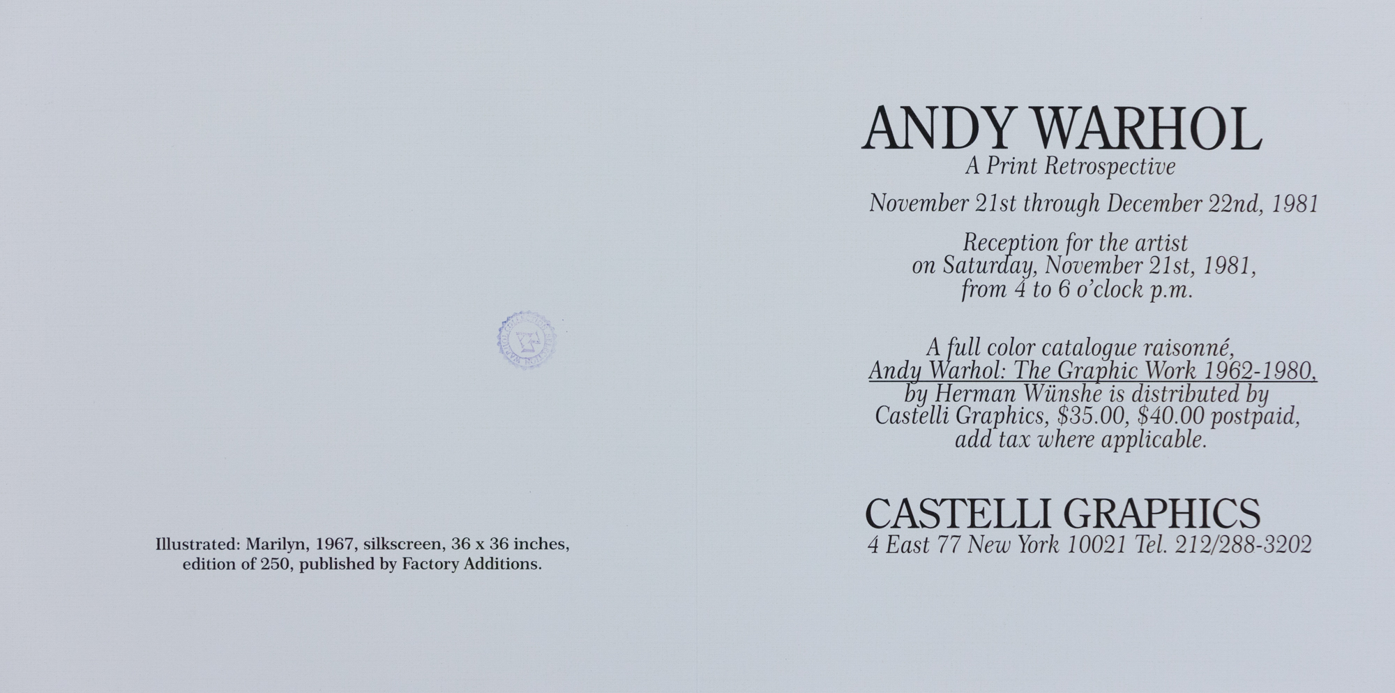 Invito firmato dall'artista in occasione della mostra alla Leo Castelli, New York