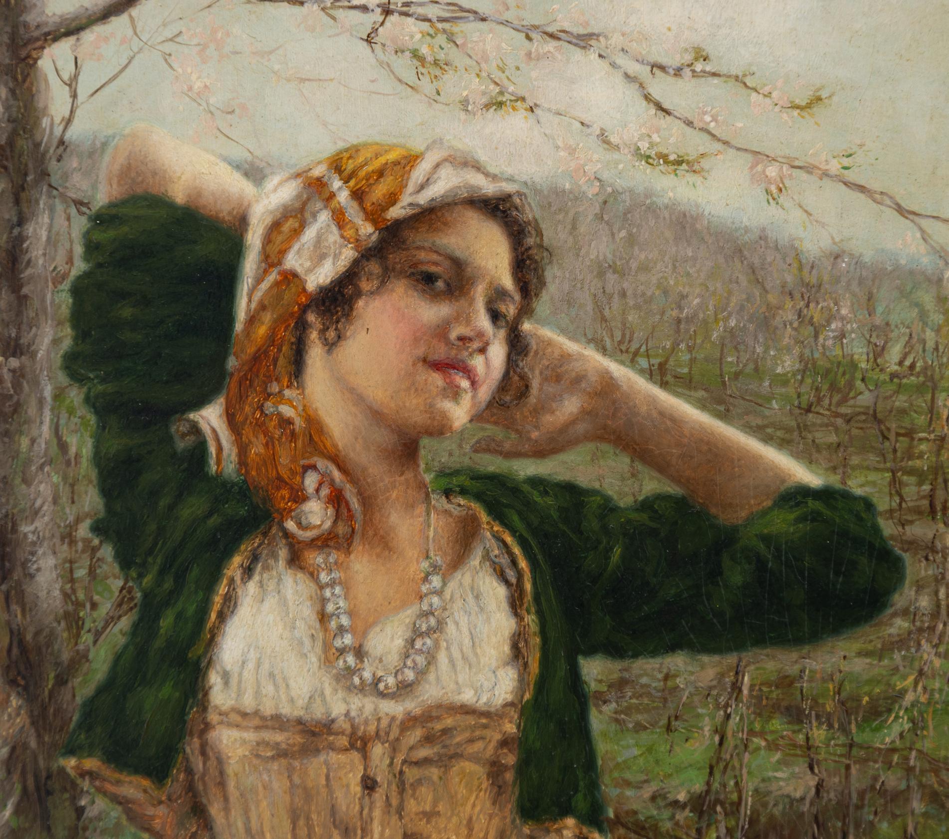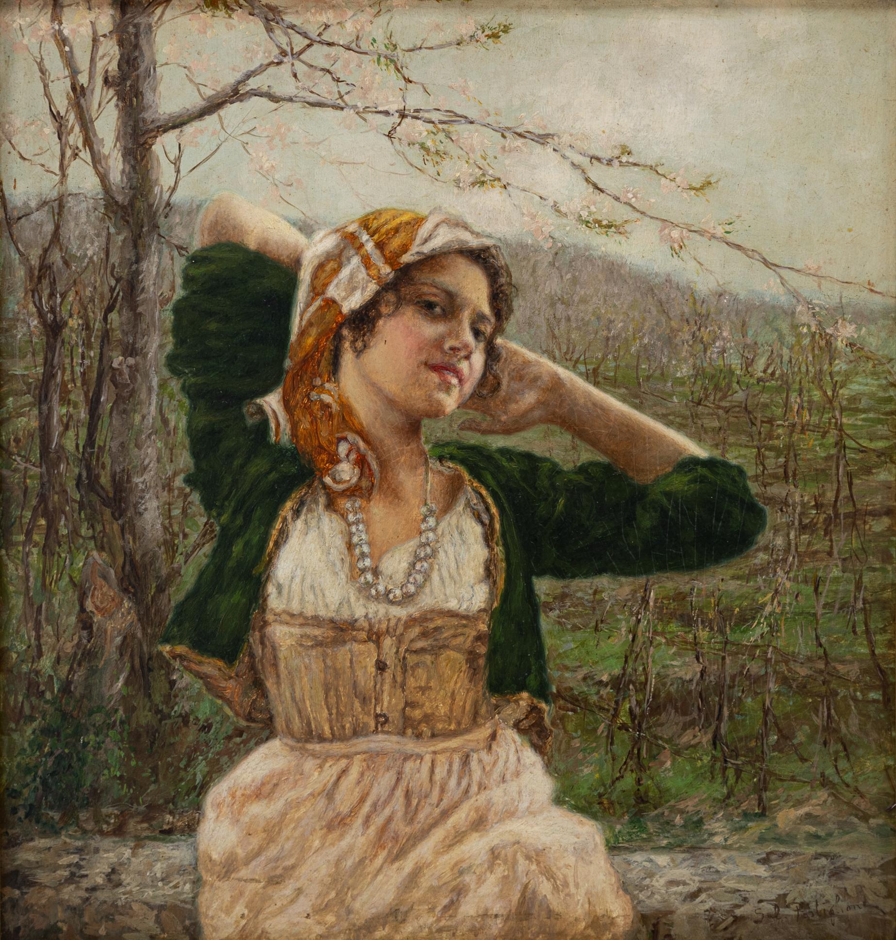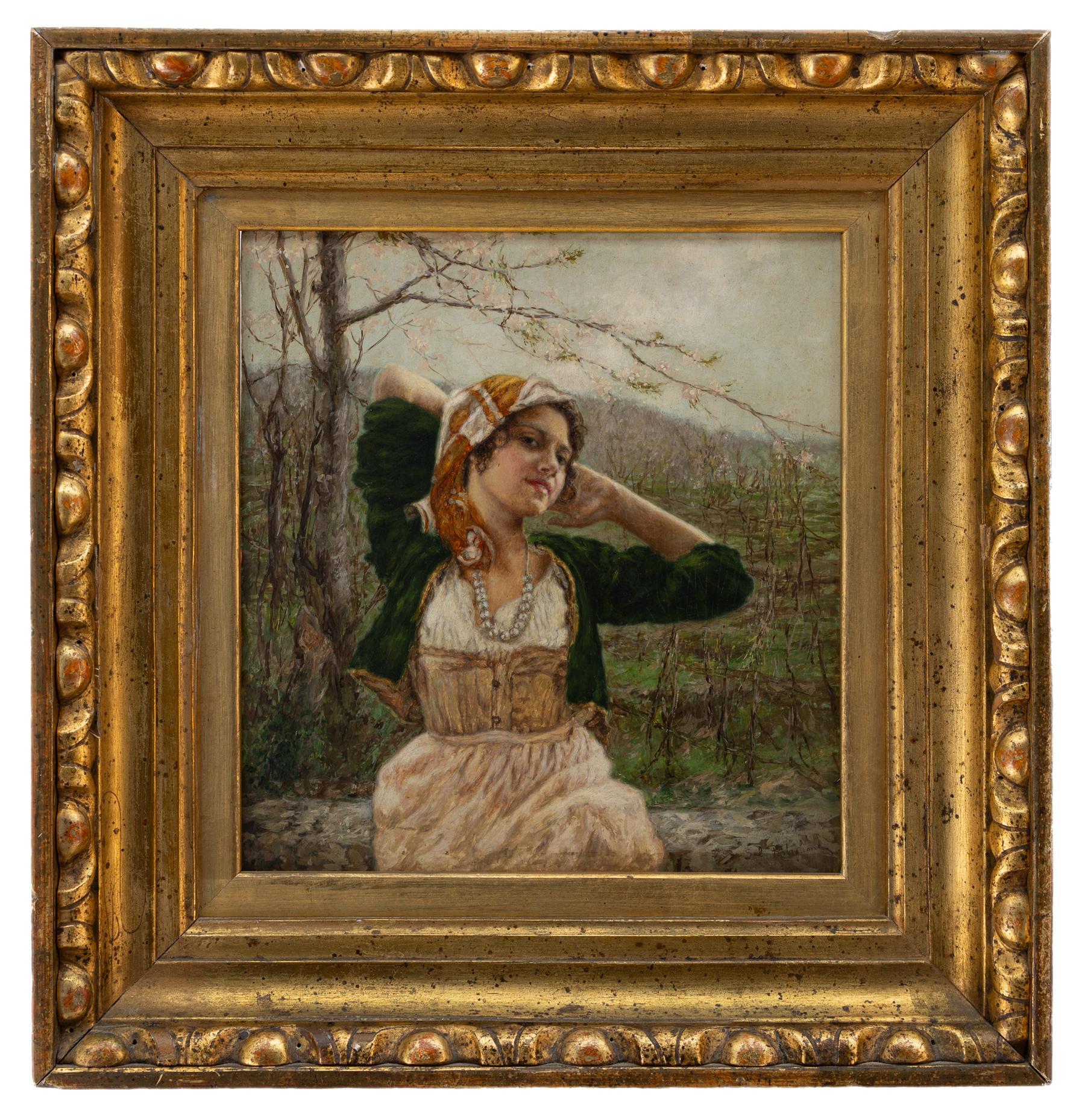 Salvatore Postiglione - Fanciulla - Napoli 1861 - 1906 - Olio su cartone cm 25,5x24