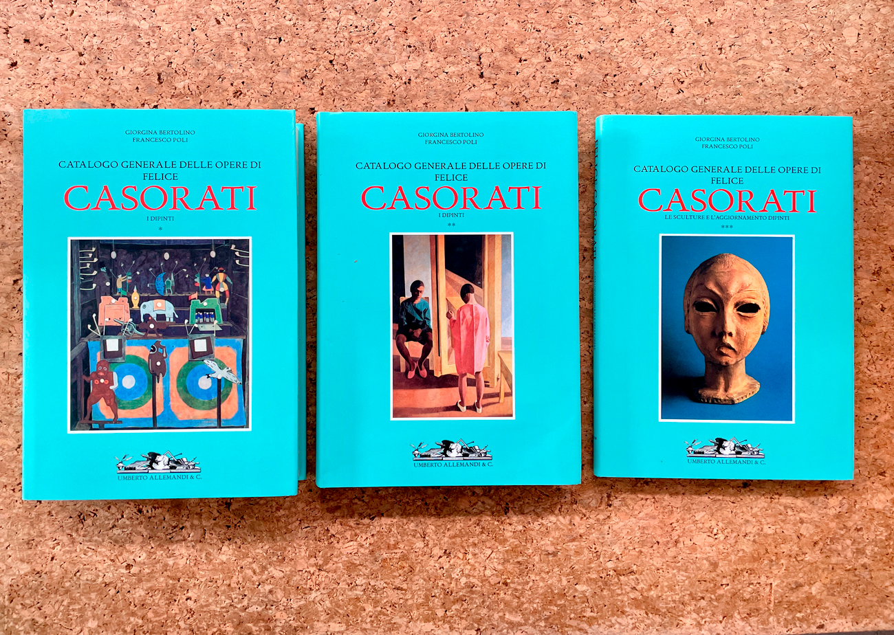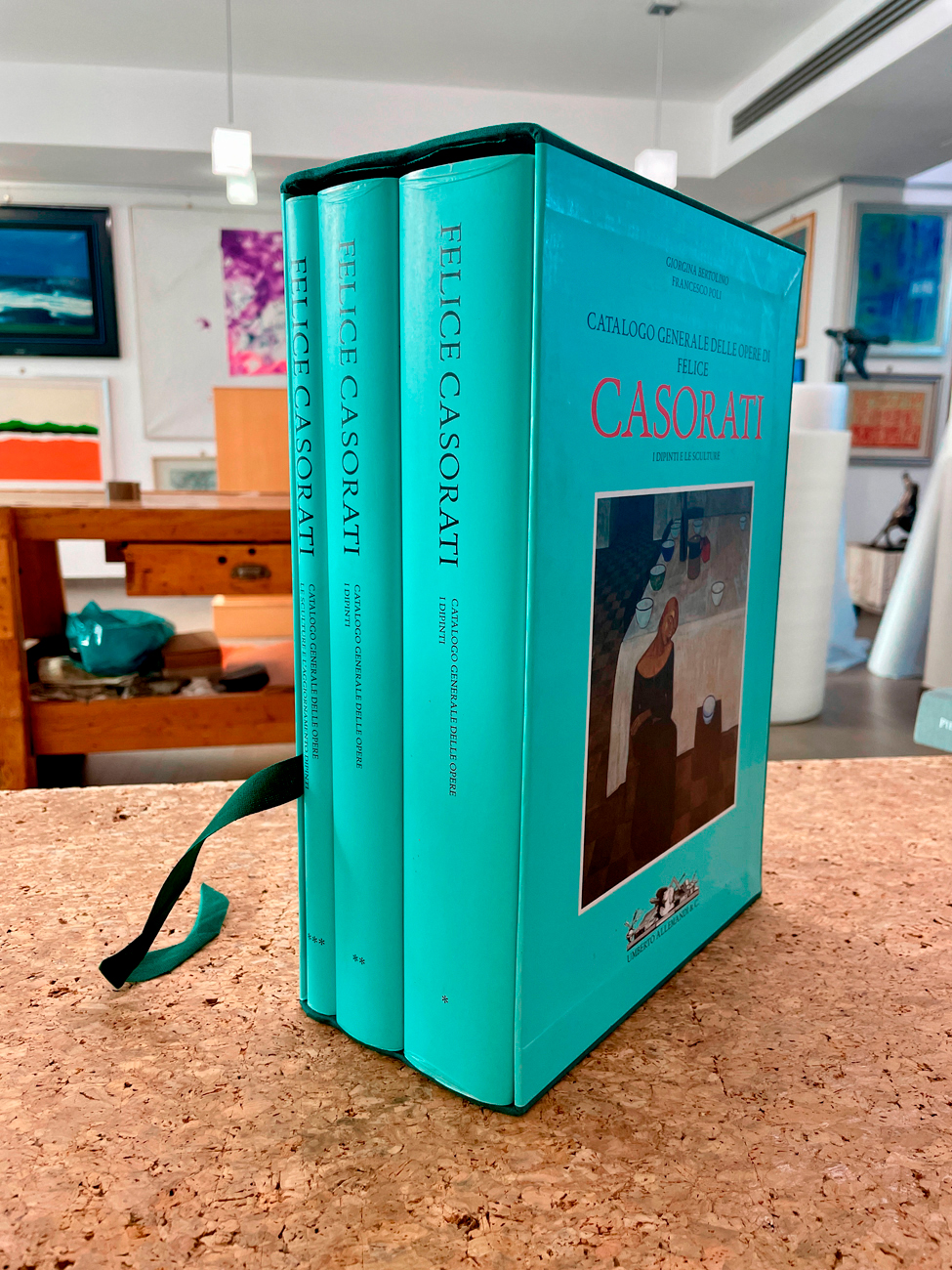 Cofanetto contenente 3 tomi riccamente illustrati del catalogo generale delle opere e delle sculture di Felice Casorati, a cura di Giorgina Bertolino e Francesco Poli