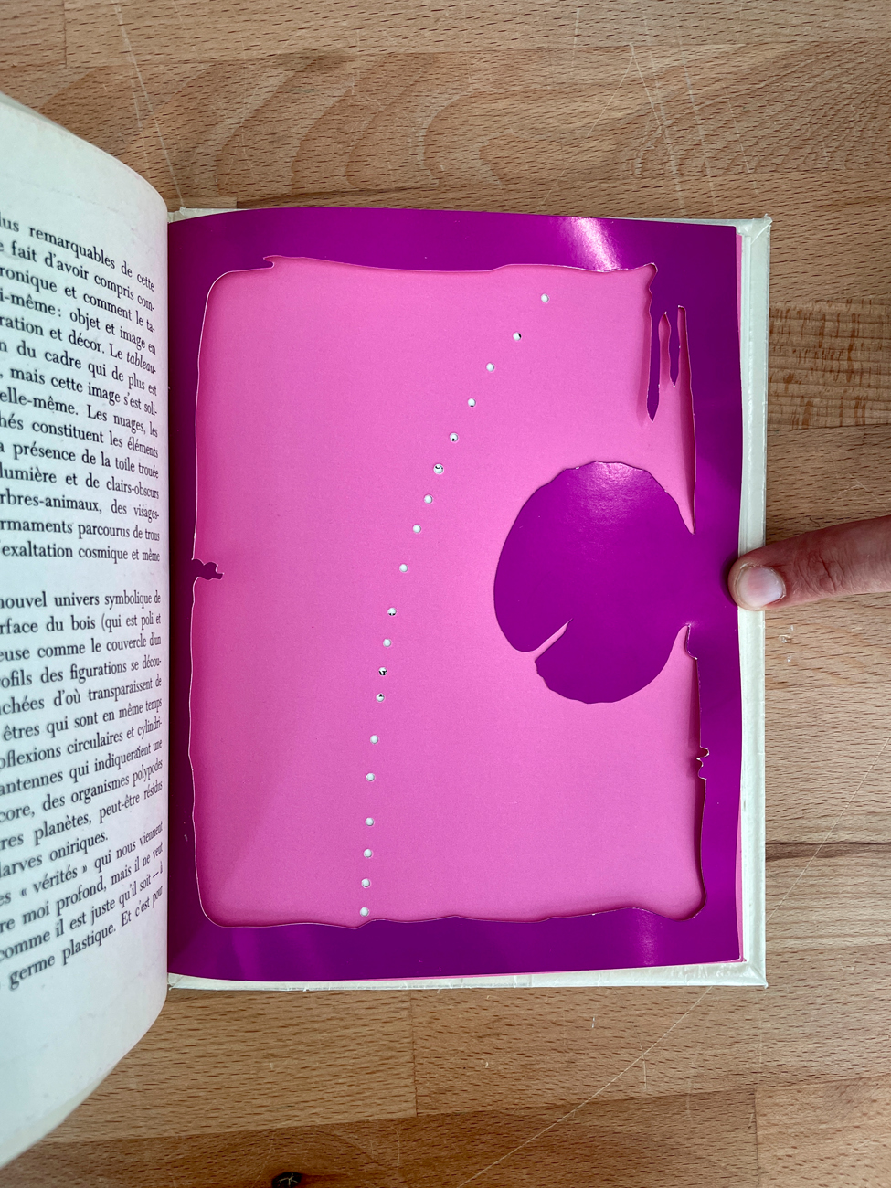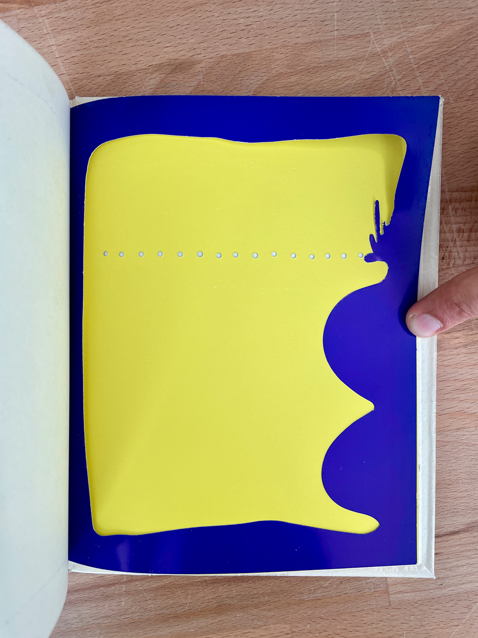 Il libro è composto da un testo di quattro pagine in francese di Gillo Dorfles, quattro pagine recanti foto in bianco e nero, ciascuna delle quali incorniciata in giallo, e quattro teatrini costituiti da due cartoncini colorati sovrapposti, sagomati e forati