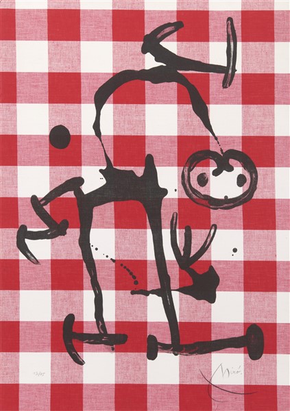 Joan Miró "L'Illêtre aux Carreaux rouges" 1969 litografia a colori su tela su ca