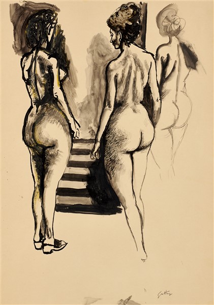 Renato Guttuso "Senza titolo" anni '80 matita, china e pastello su cartoncino cm