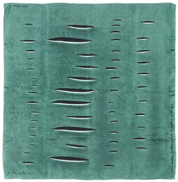 Lucio Fontana "Foulard" 1958 foulard in seta verde scuro cm 78x78 Esemplare nume