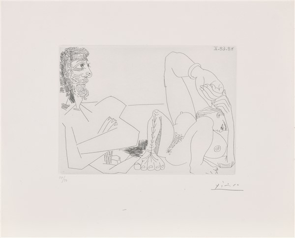 PABLO PICASSO "La Sieste: Couple da La Serie 347" 1968 acquaforte lastra cm 15x2