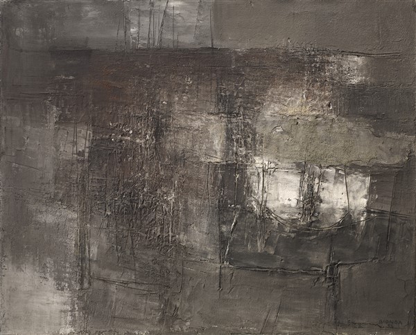 Mario Bionda "Sabbia e grigio" 1959 olio, sabbia e tecnica mista su tela cm 81x1