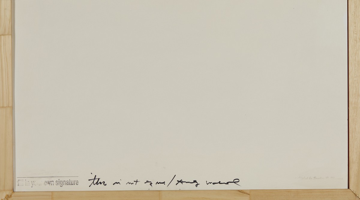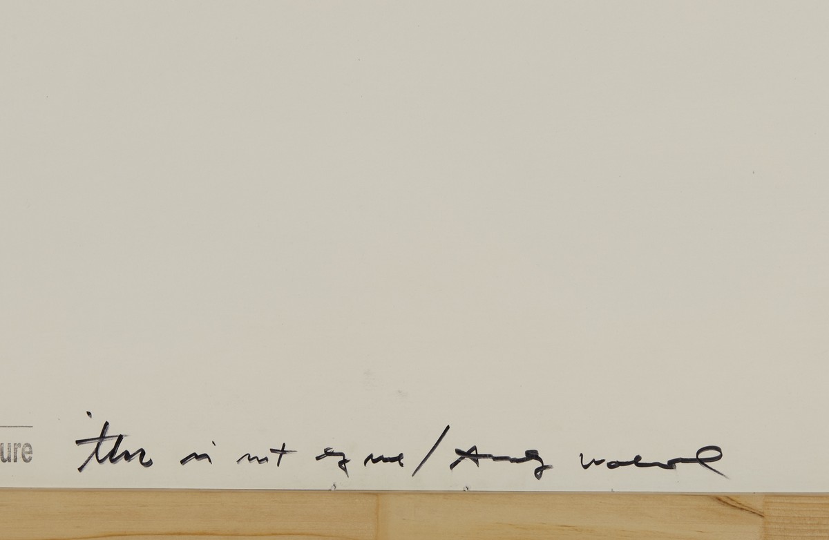 WARHOL ANDY (1928 - 1987) MARILYN (THIS IS NOT BY ME),1970. serigrafia su carta. Cm 84,50 x 84,50. sul retro: firma e iscrizione "This is not by me"; timbri ad inchiostro nero "pubblished by Sundy B. Morning" and "fill in your own signature"