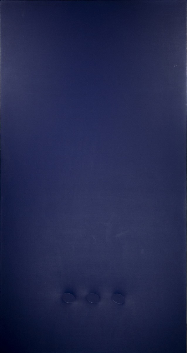 SIMETI TURI (1929 - 2021) TRE OVALI BLU, 1980. Acrilico su tela sagomata. Cm 90,00 x 170,00. sul retro: firma e data