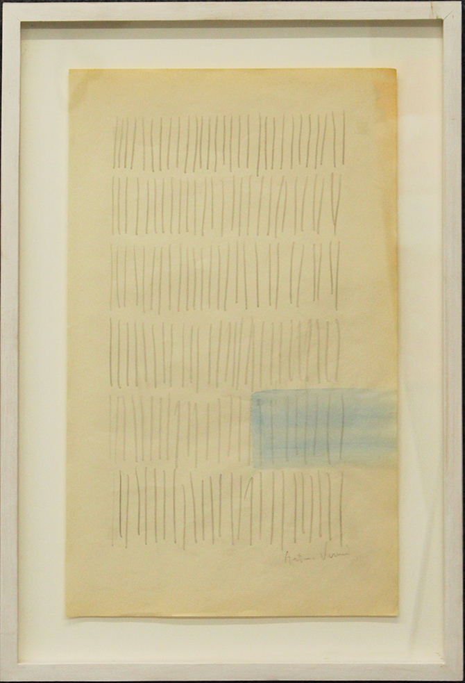 ARTURO VERMI, "Diario", 1964, tecnica mista su cartoncino, dim 49,5x28,5, autentica della vedova Vermi, Anna Maria Rizzo al N°R46D231116A363. Al fronte: firma in basso a destra. Opera con cornice.