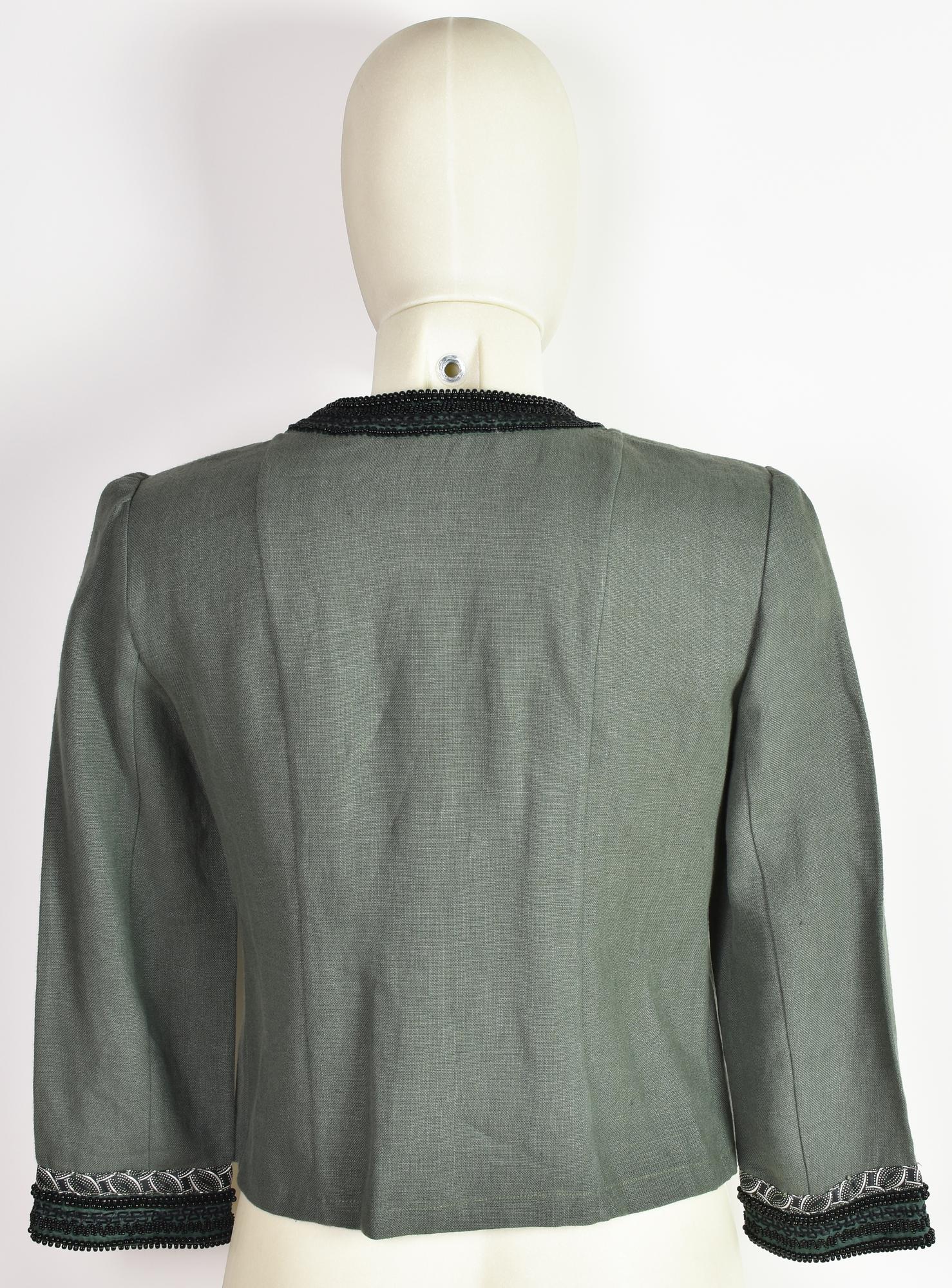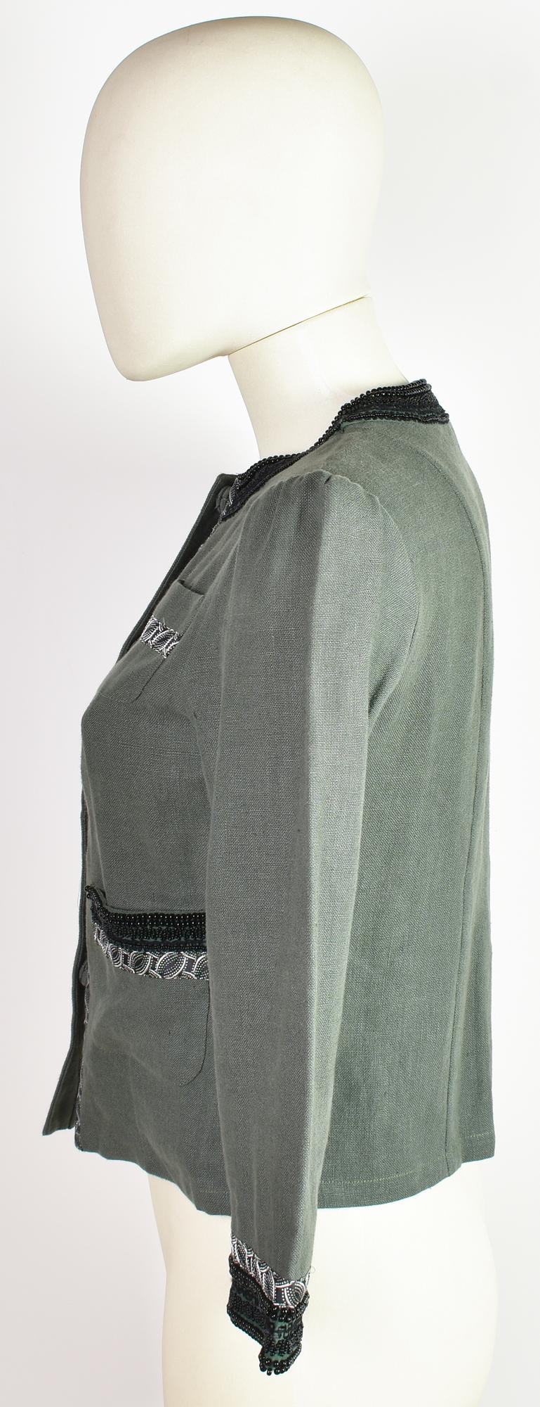 Short linen jacket with hand-embroidered details. Concealed buttons. Size 40 IT. Made in Italy. Perfectly preserved.