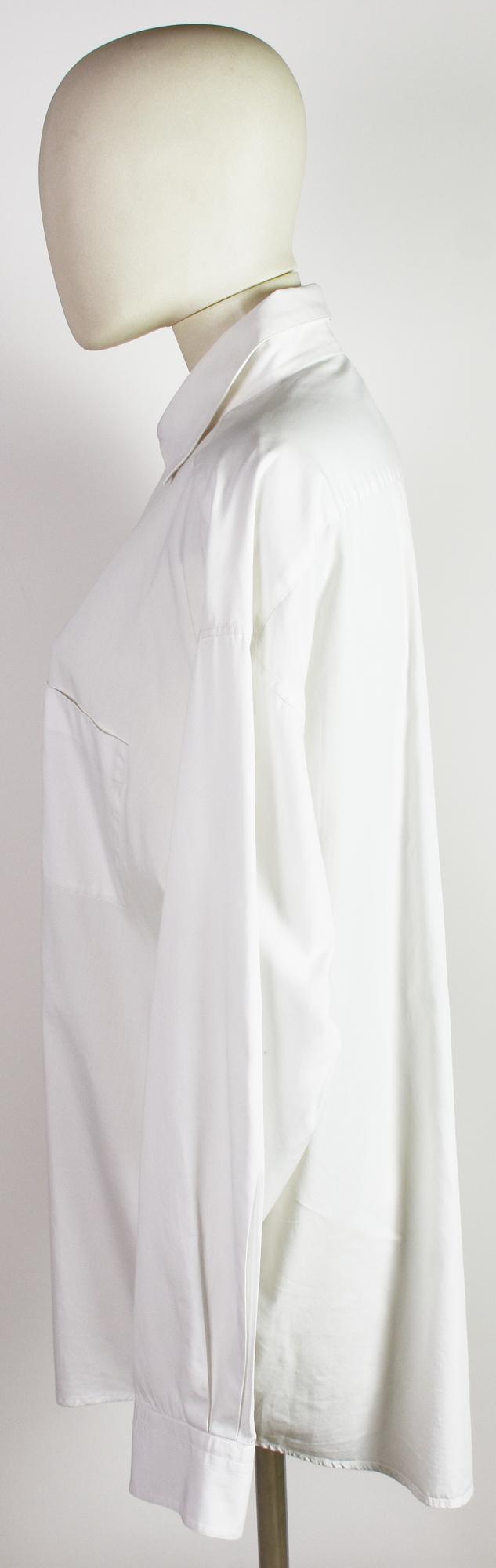 Camicia uomo in popeline di cotone bianco. Con bottoni in madreperla bianchi. Taglia L/IV. Anni '80. Prodotto in Italia. Perfettamente conservata.