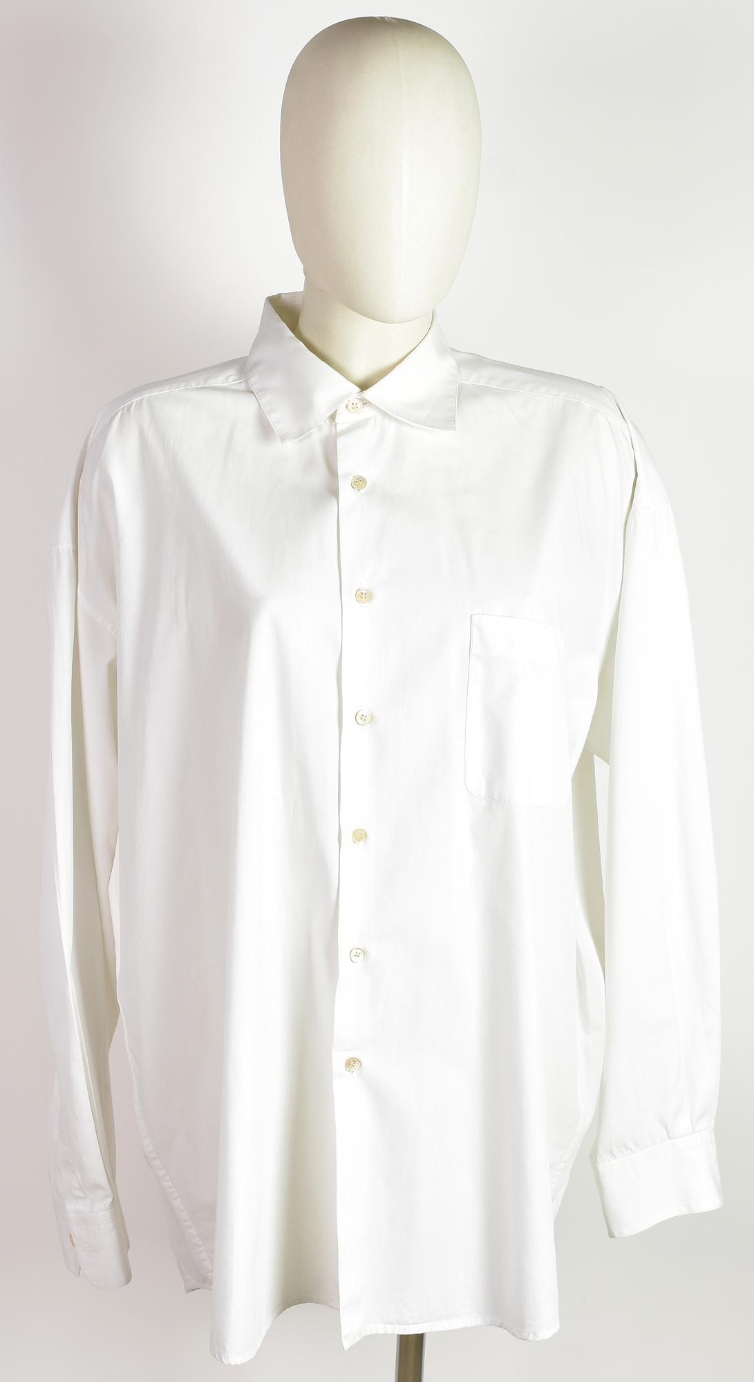 Romeo Gigli men's shirt in white cotton poplin. With white mother-of-pearl buttons. Size L/IV. 1980s. Made in Italy. Perfectly preserved.