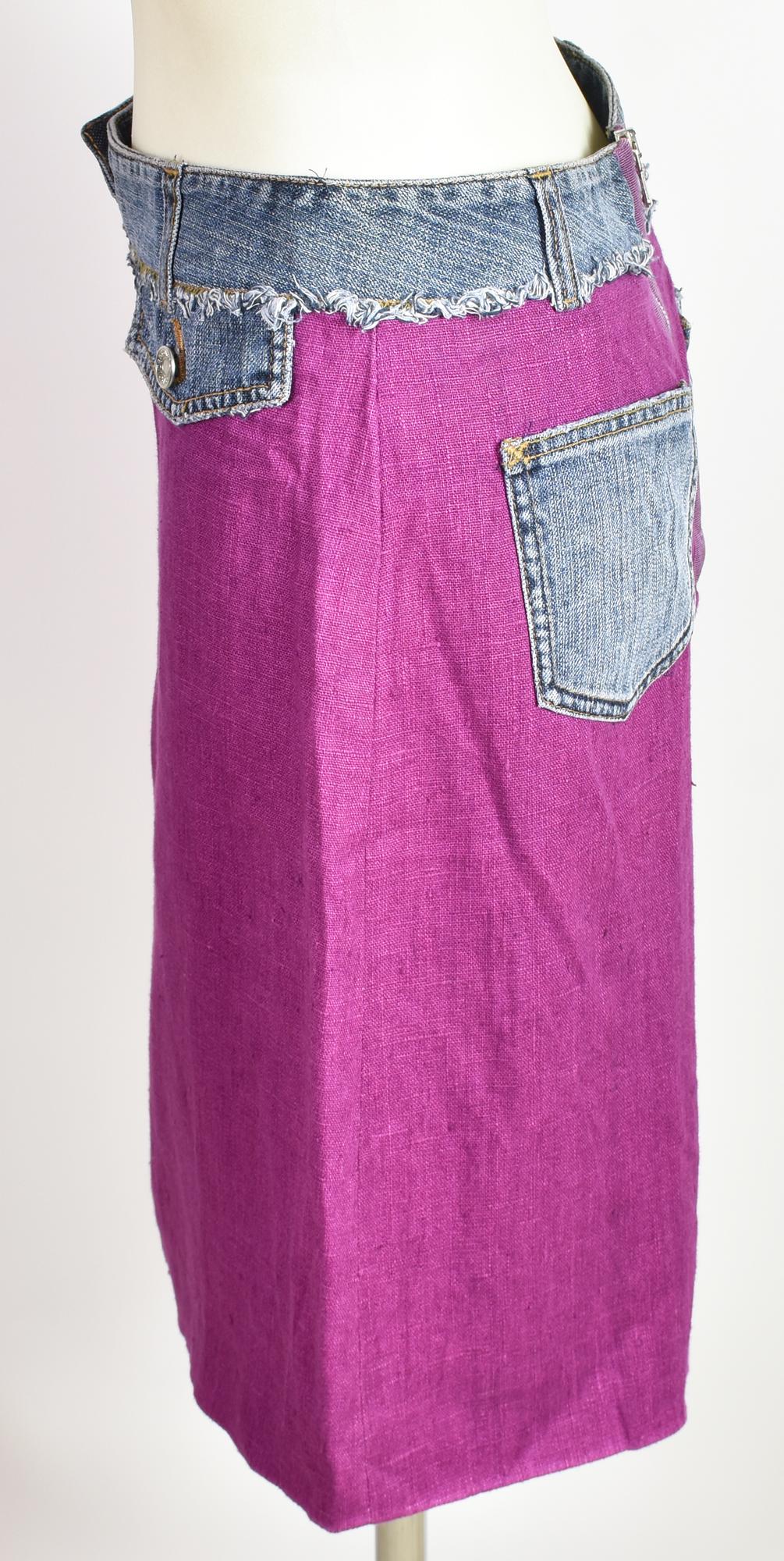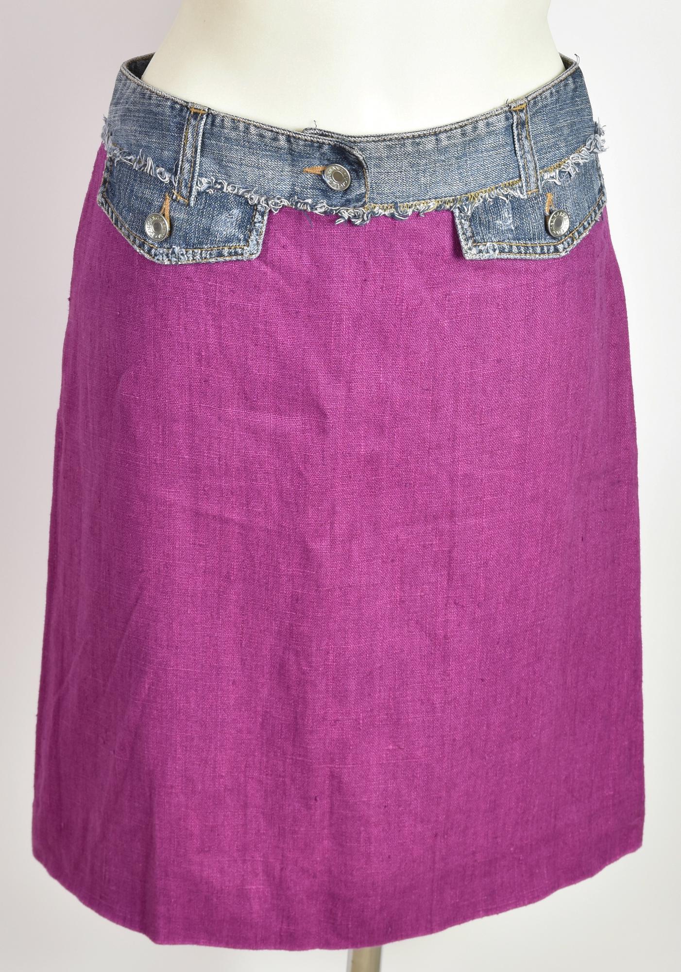 Gonna in lino con inserti in denim. Taglia 42 IT. Prodotto in Italia. Perfettamente conservato.