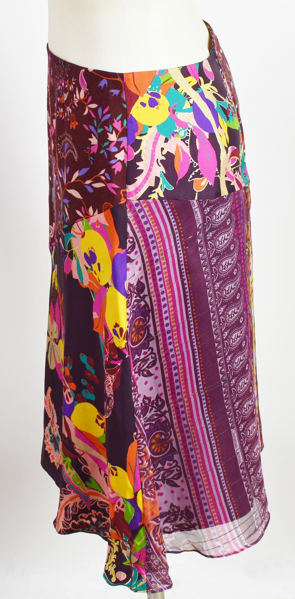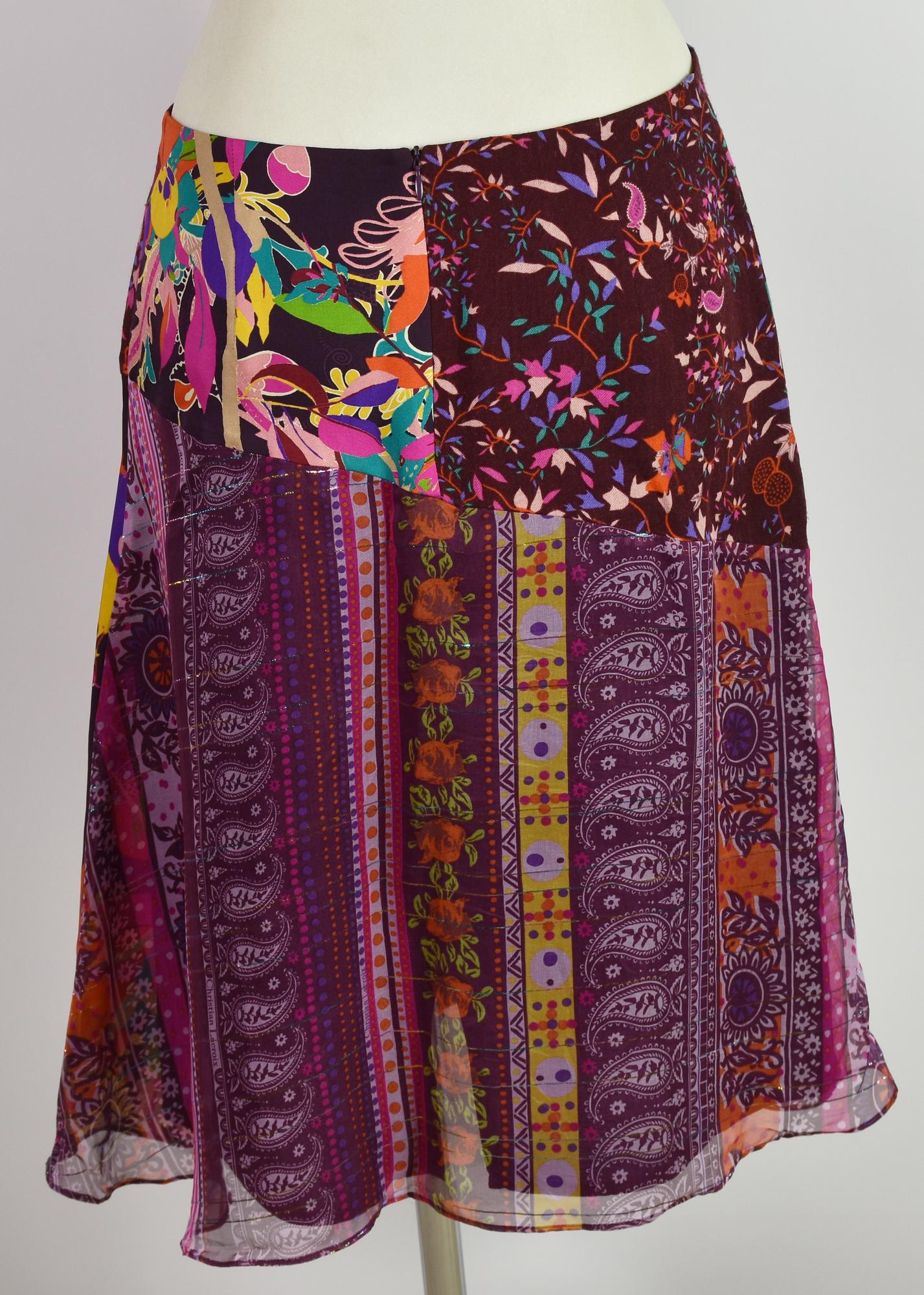 Patchwork wool and printed silk skirt. 1990s. Size 40 IT. Made in Portugal. Perfectly preserved.
