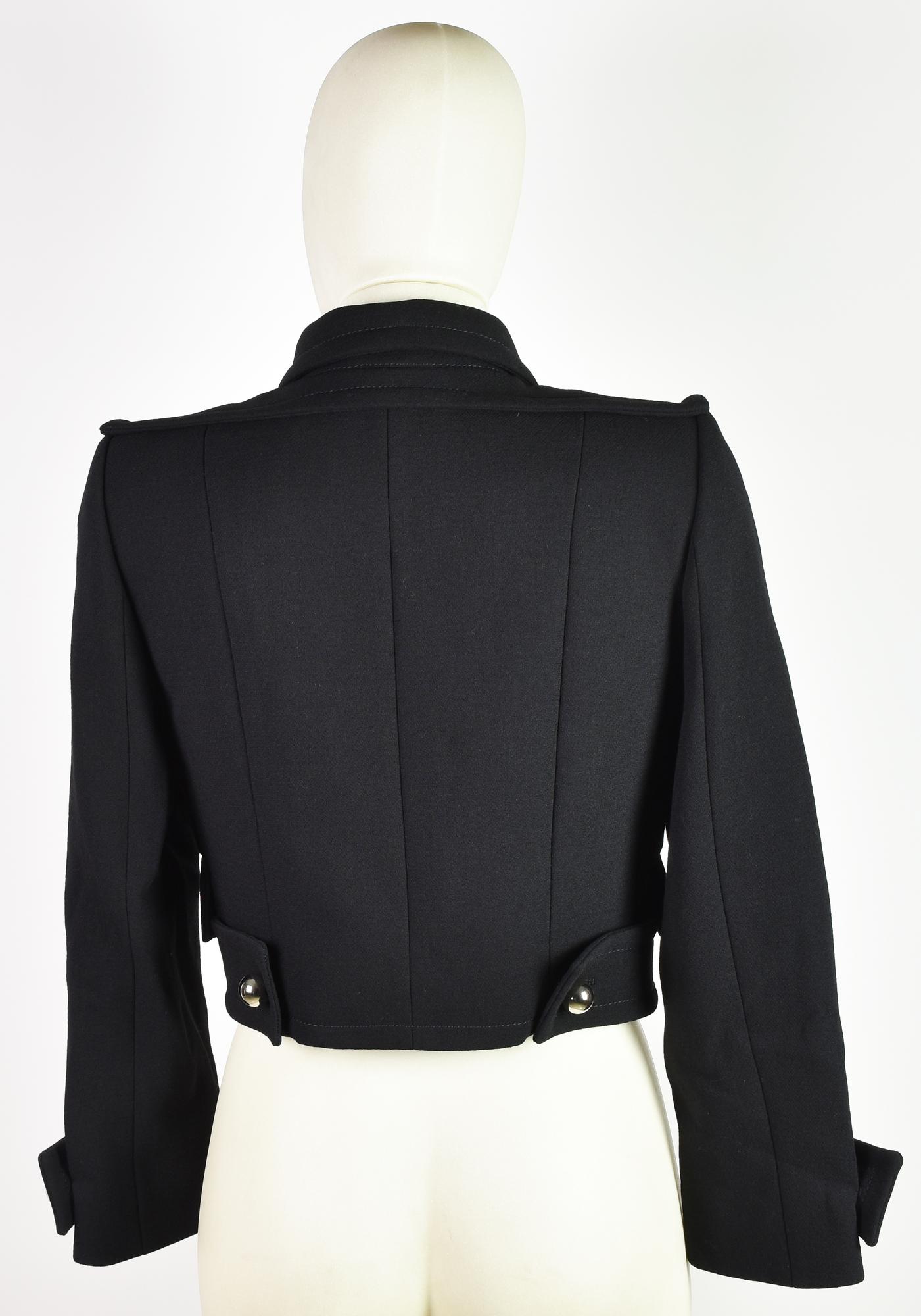 Giacca nera corta in stile militare. Grandi bottoni in metallo sferici. Primi anni 2000, designer Riccardo Tisci. 100% lana. Taglia 40. Prodotto in Francia. Mai indossato, ancora con cartellino. Eccellente.