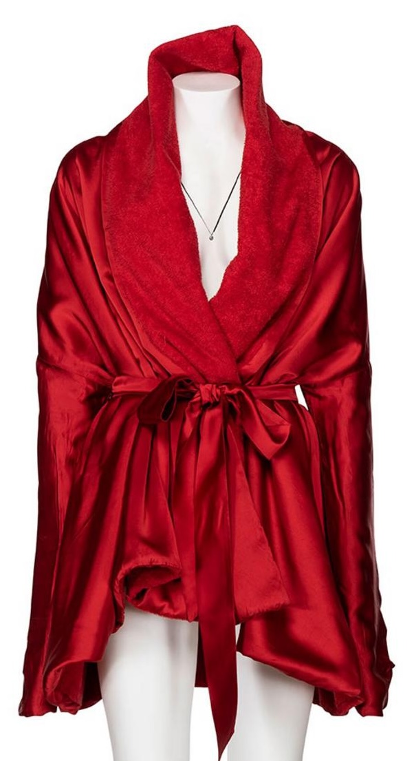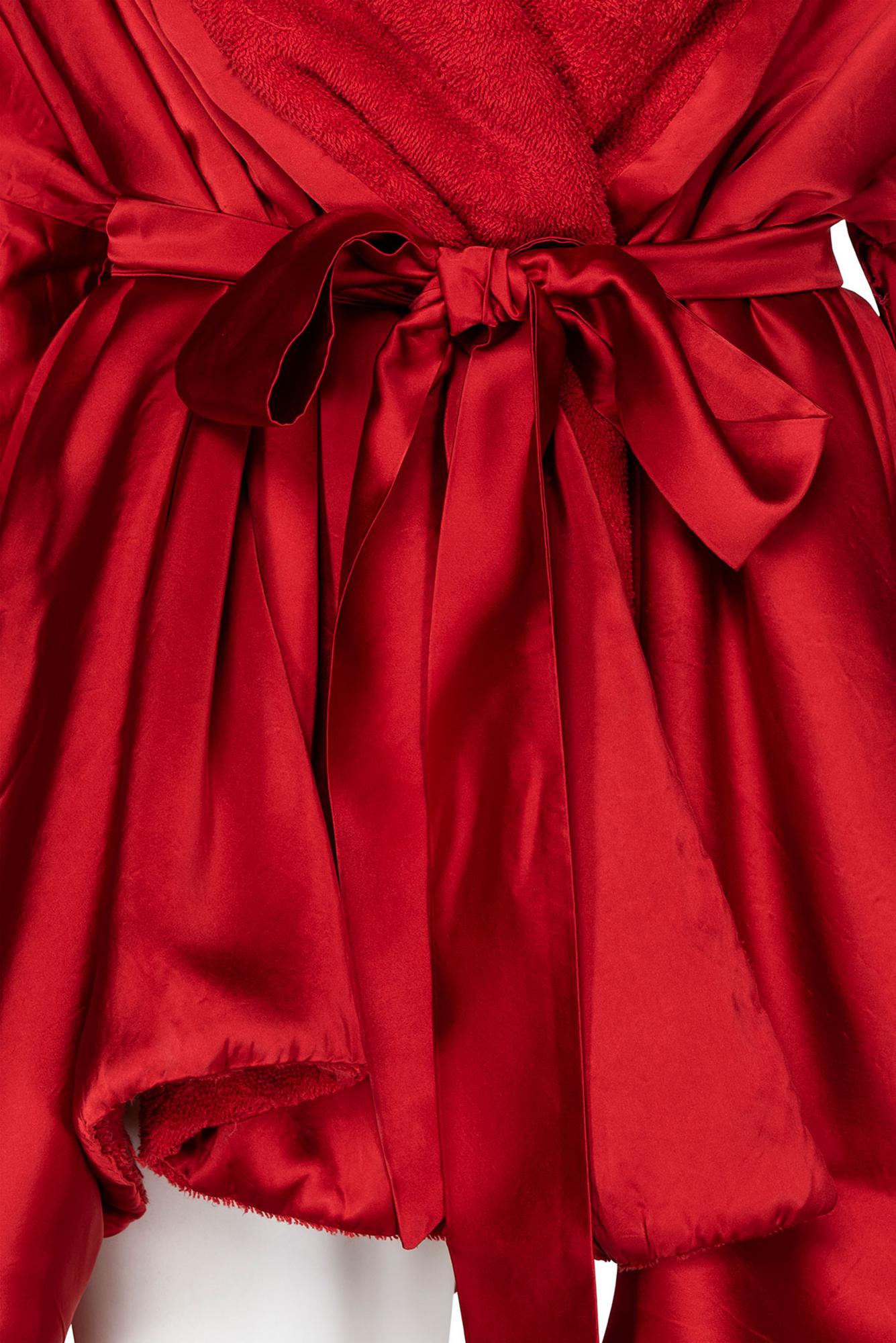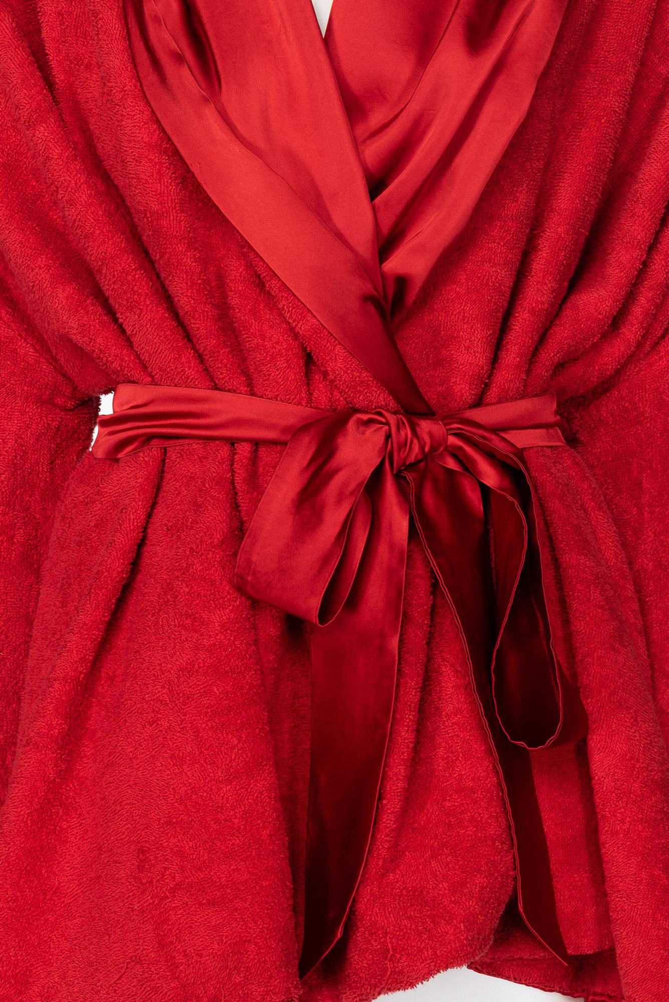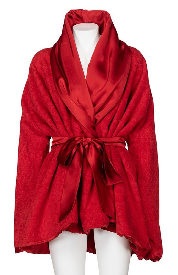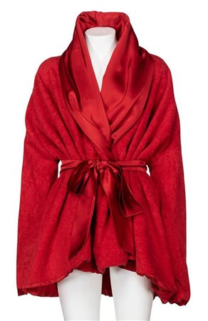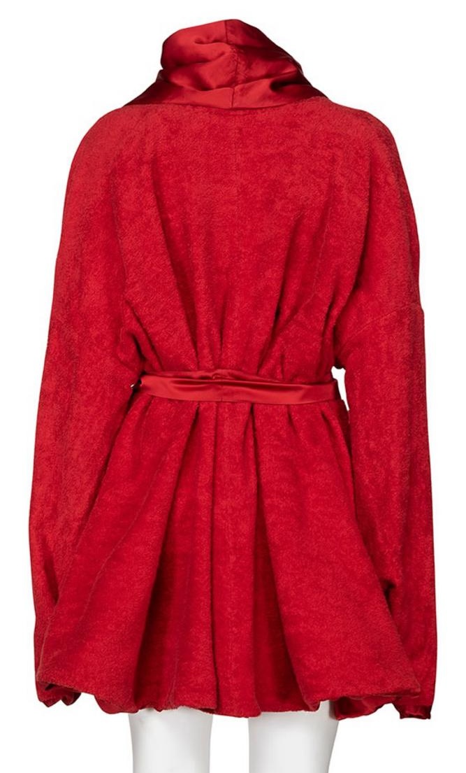 Iconic and rare terry cloth and satin reversible oversize cape from the Spring Summer 1992 collection. Shawl collar. Satin belt. No composition tag, seems to be made of cotton and viscose. No size tag, fits like L. Well Preserved, some slight pull threads and light imperfections on satin.