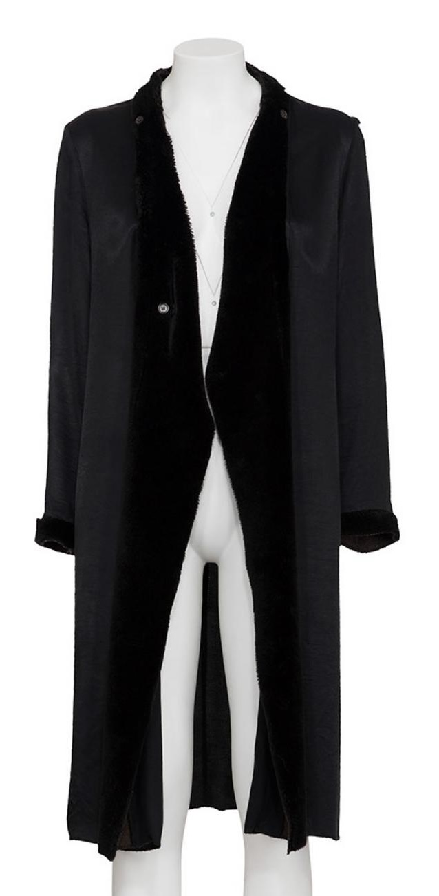 Rare reproduction of a lining of a man's overcoat from the 60's from the Fall Winter 1995 collection. Fake fur details. Inner pocket at fur collar. 100% viscose. Fake fur 66% acrylic, 34% cotton. Size is M. Well Preserved.