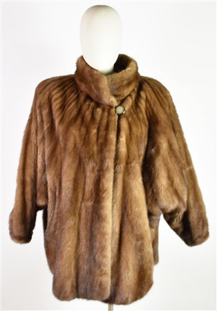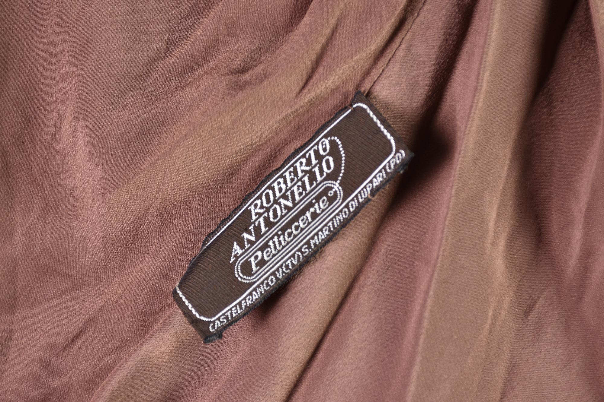 Pelliccia di visone vintage della pellicceria Roberto Antonello. Presenta una chiusura con bottone singolo, maniche a pipistrello e collo alla coreana. Lunghezza cm 82. Ben conservata.