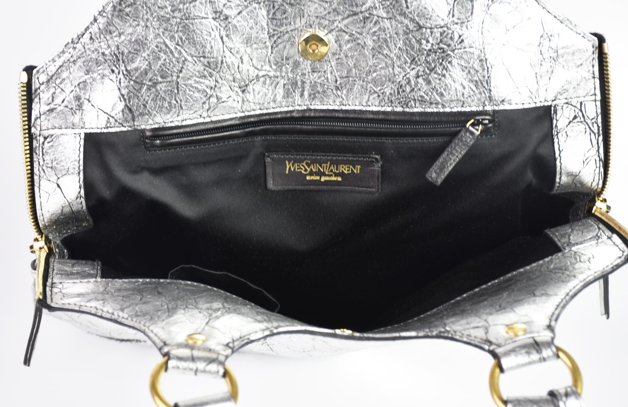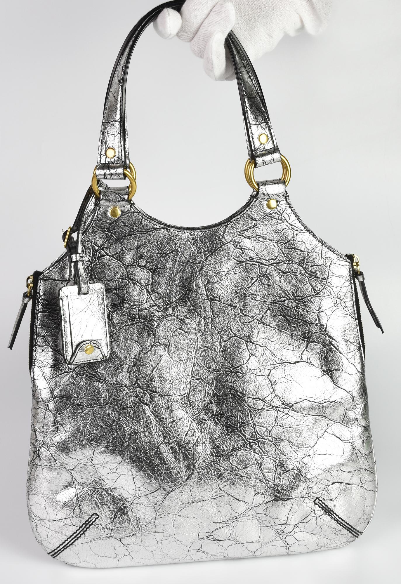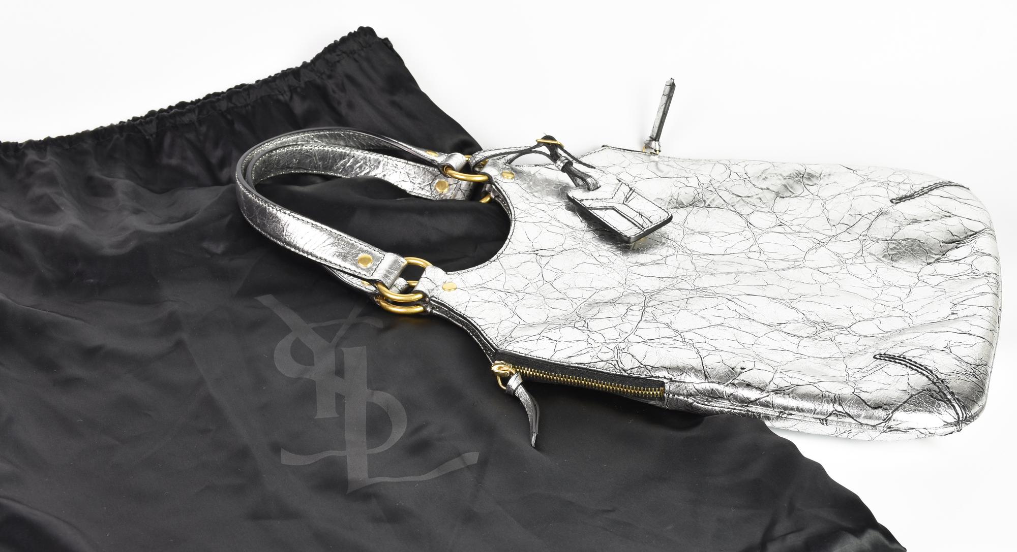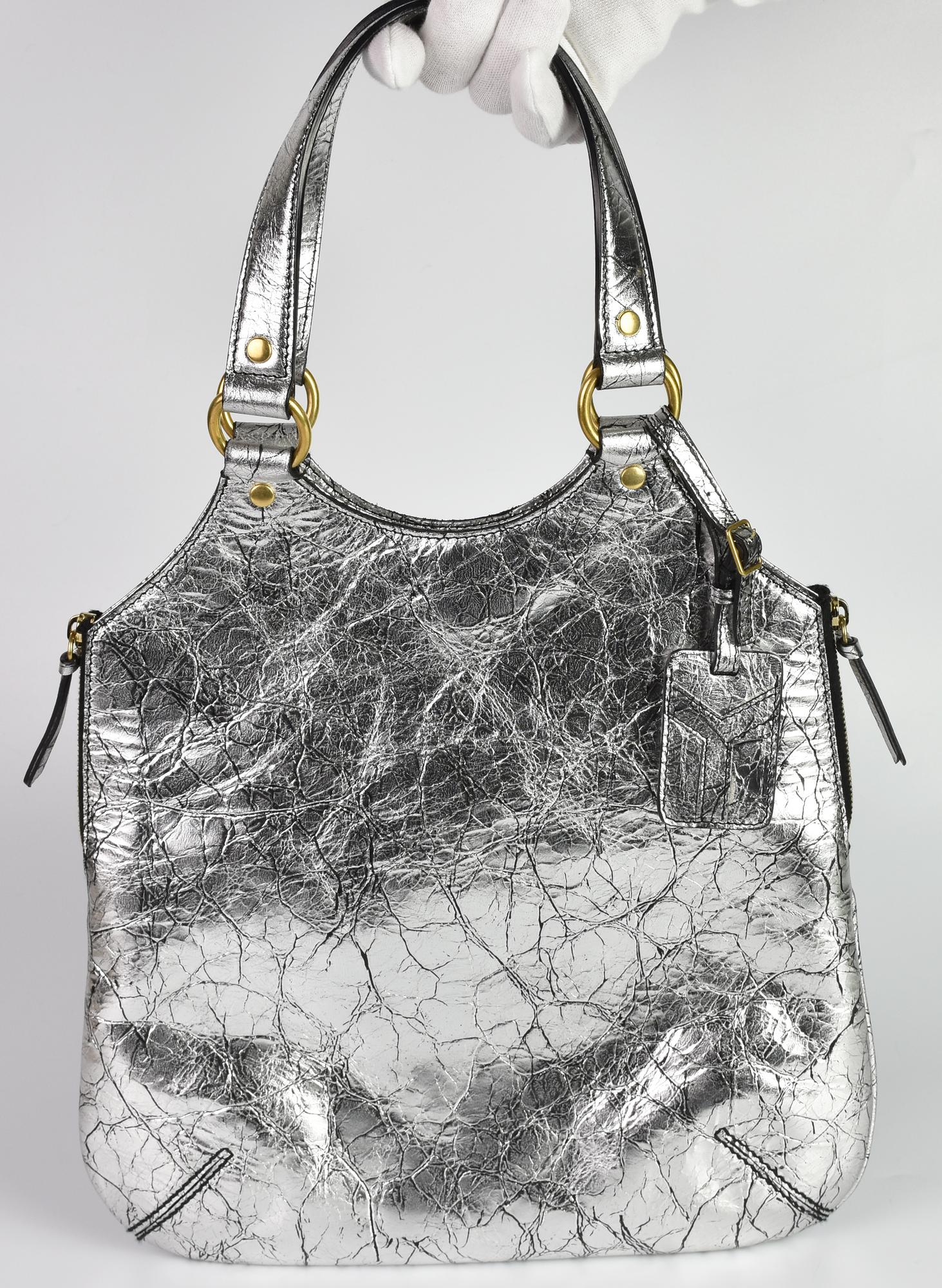 Yves Saint Laurent METROPOLIS BAG DESCRIPTION: Silver leather tote bag with...