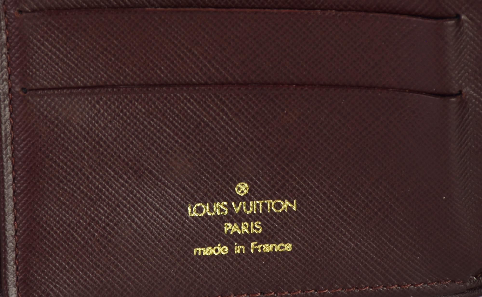 Pink monogram canvas wallet, closed with two snap buttons. Interior in burgundy leather divided into two compartments, plus a separate pocket for coins with snap closure. Dimensions: 11,50x10,50 cm. Made in France. Well preserved.