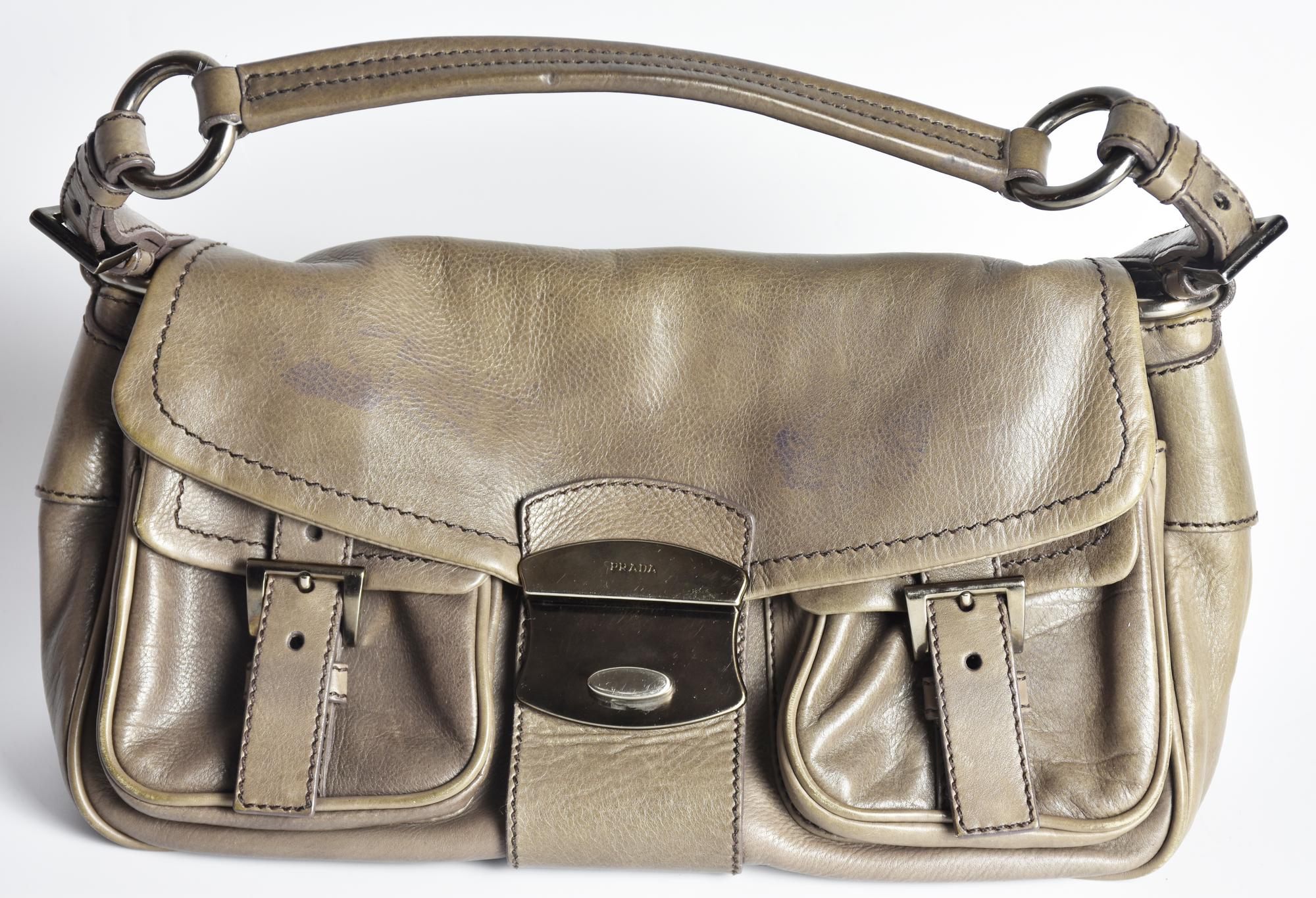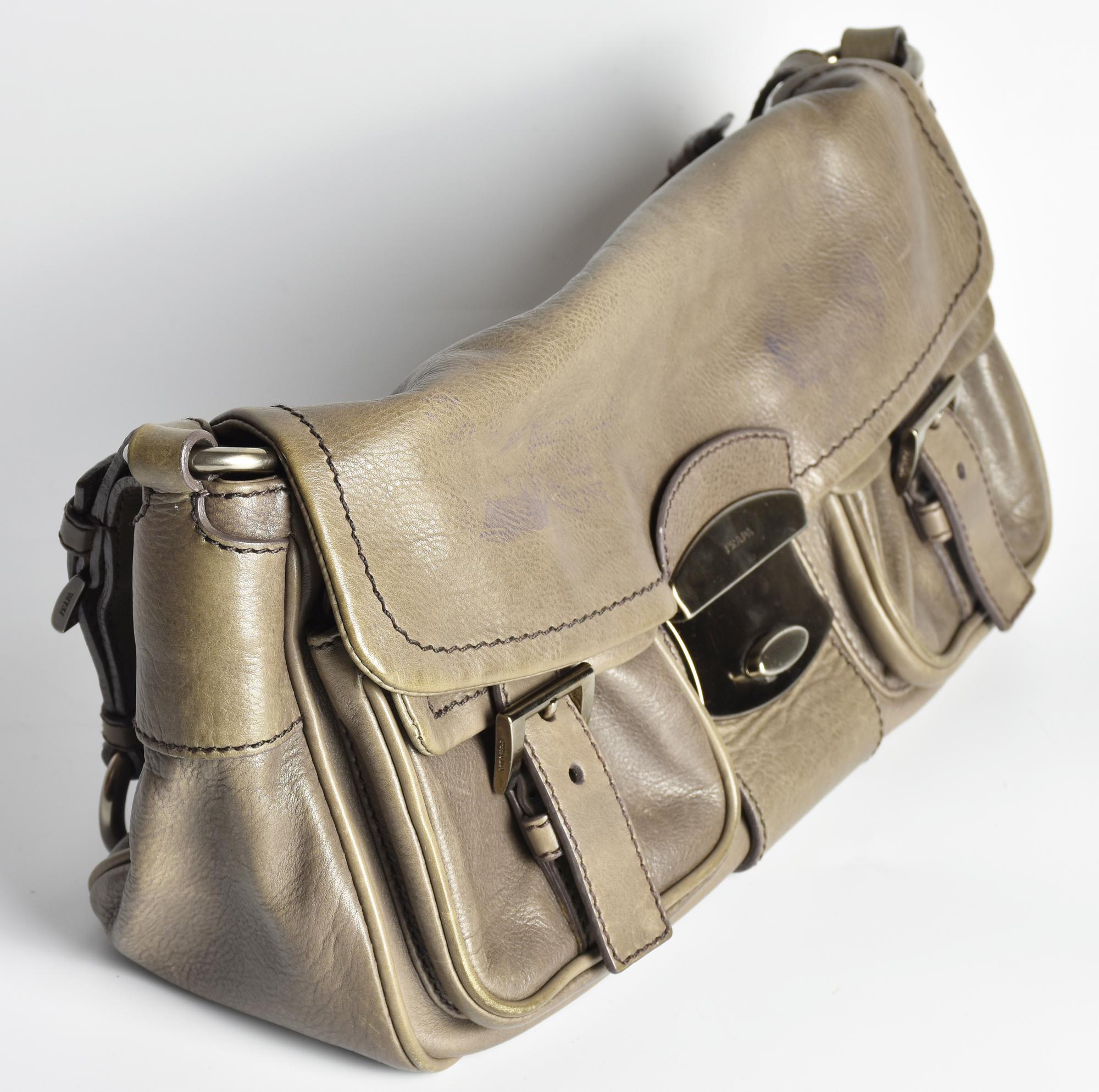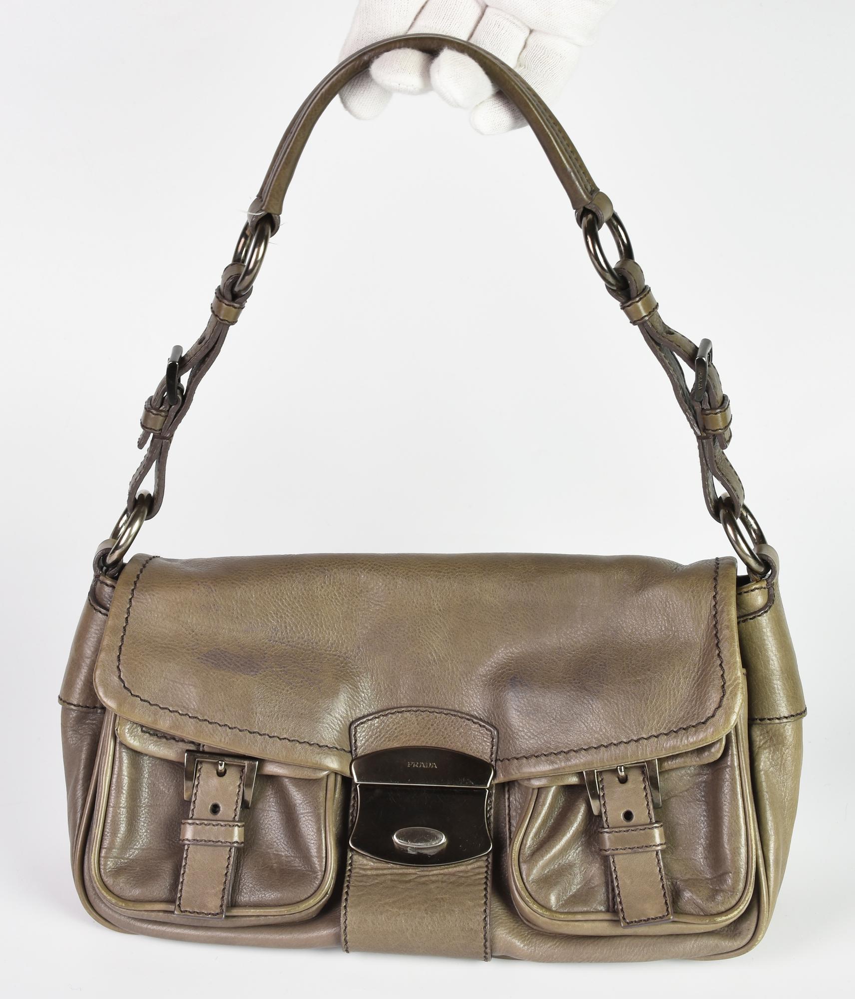 Prada BAGUETTE LEATHER BAG DESCRIPTION: Leather shoulder bag with snap...