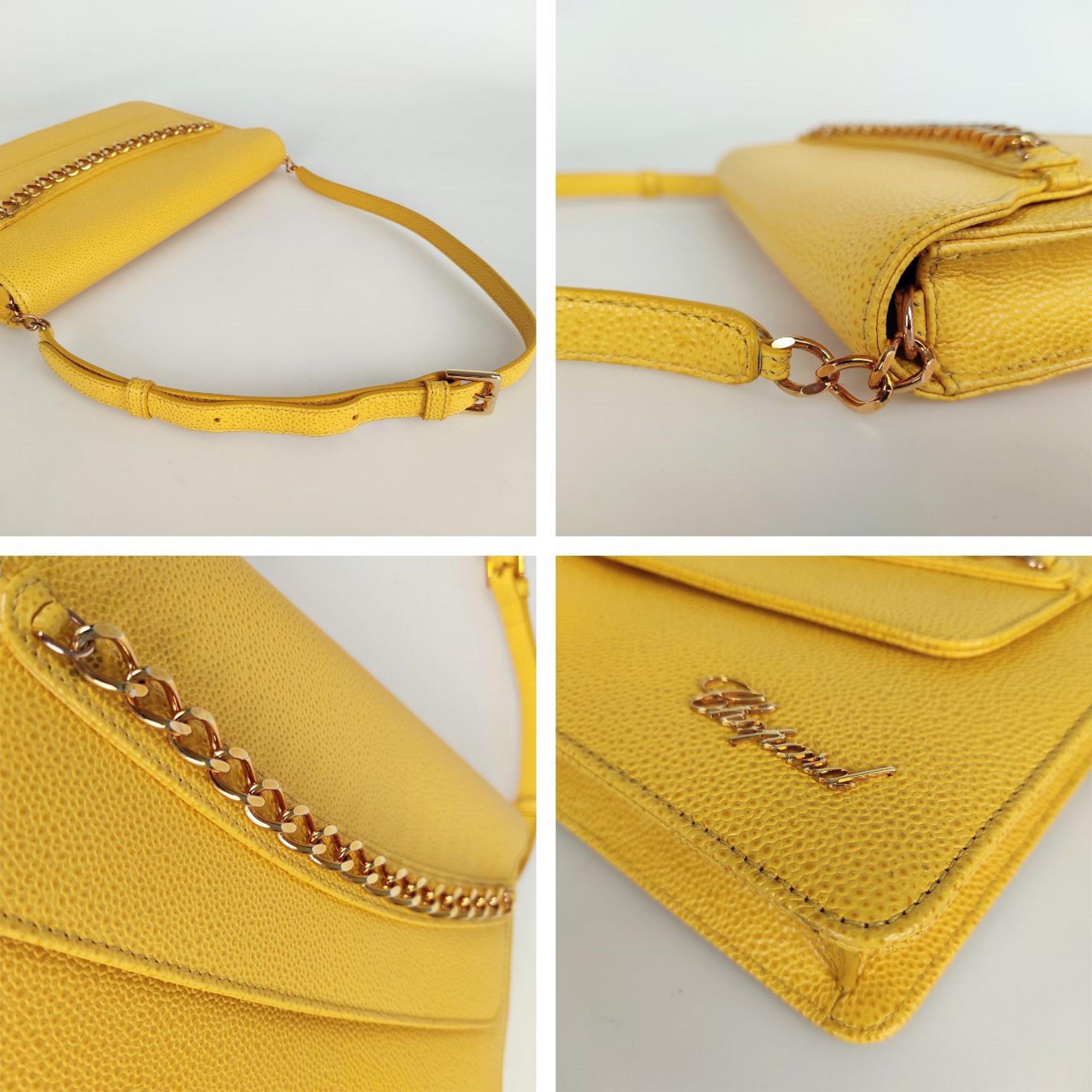 In pelle martellata di colore giallo con accessori in metallo dorato.