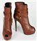 Tronchetti in pelle open toe con plateau. Chiusi con laccio, fibbia e cerniera laterale. Tacco a spillo di 15 cm e plateau di 4 cm. Taglia 38,5 IT. Prodotti in Italia. Lievissimi segni d'uso che non compromettono le ottime condizioni generali. Ben conservati.
