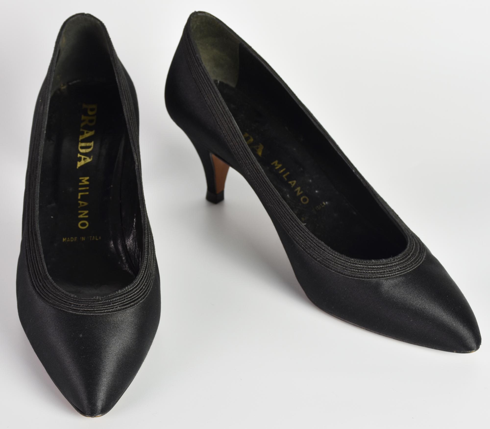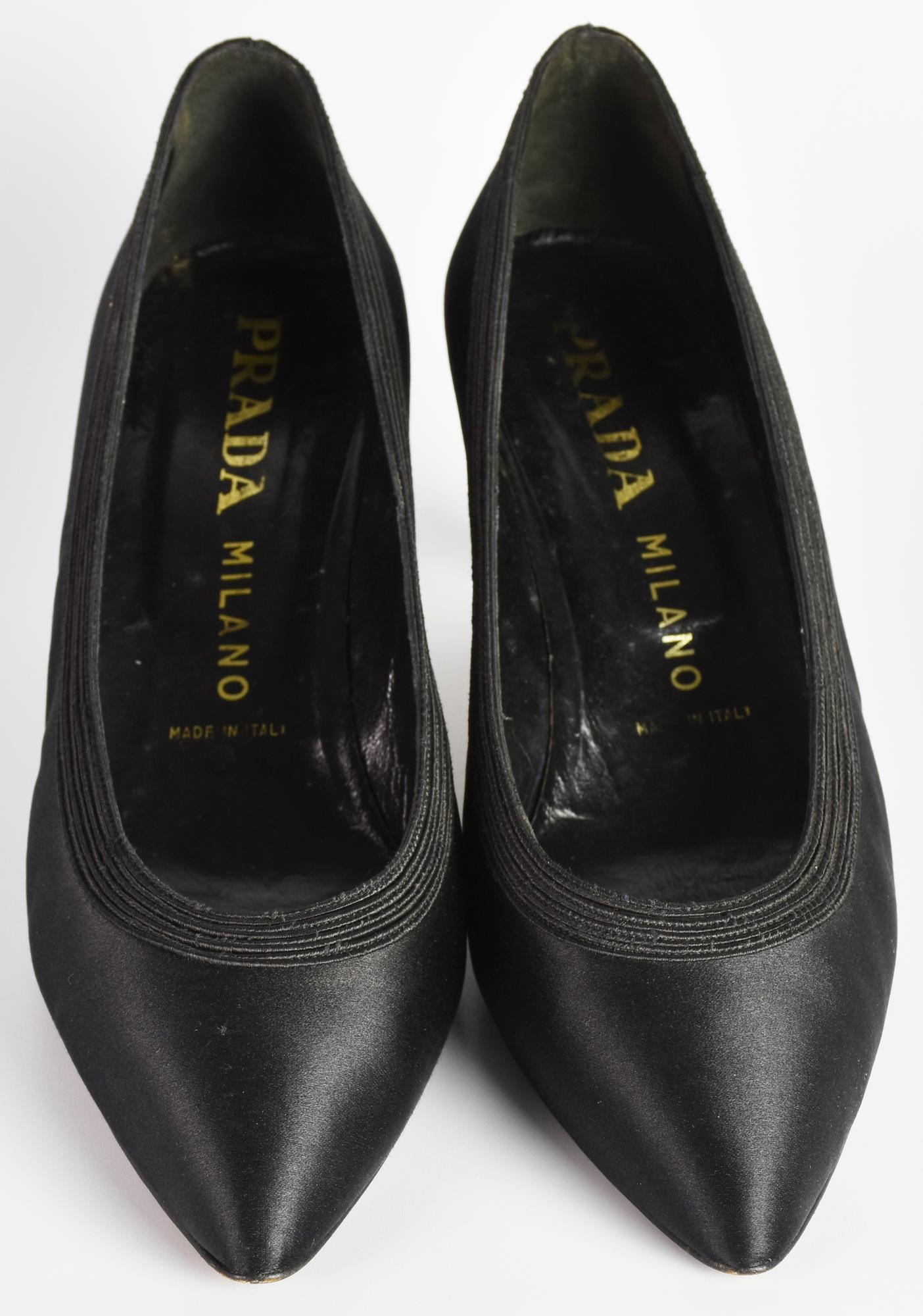 Prada SHOES DESCRIPTION: Decolletee shoes in black satin and matching...