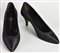 Decolletee in raso nero con bordo in passamaneria in tinta. Tacco di 6,50 cm. Taglia 39 IT. Anni '90. Prodotto in Italia. Ben conservate.