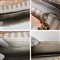 Borsa a mano vintage in tela a righe beige ed ecru'.