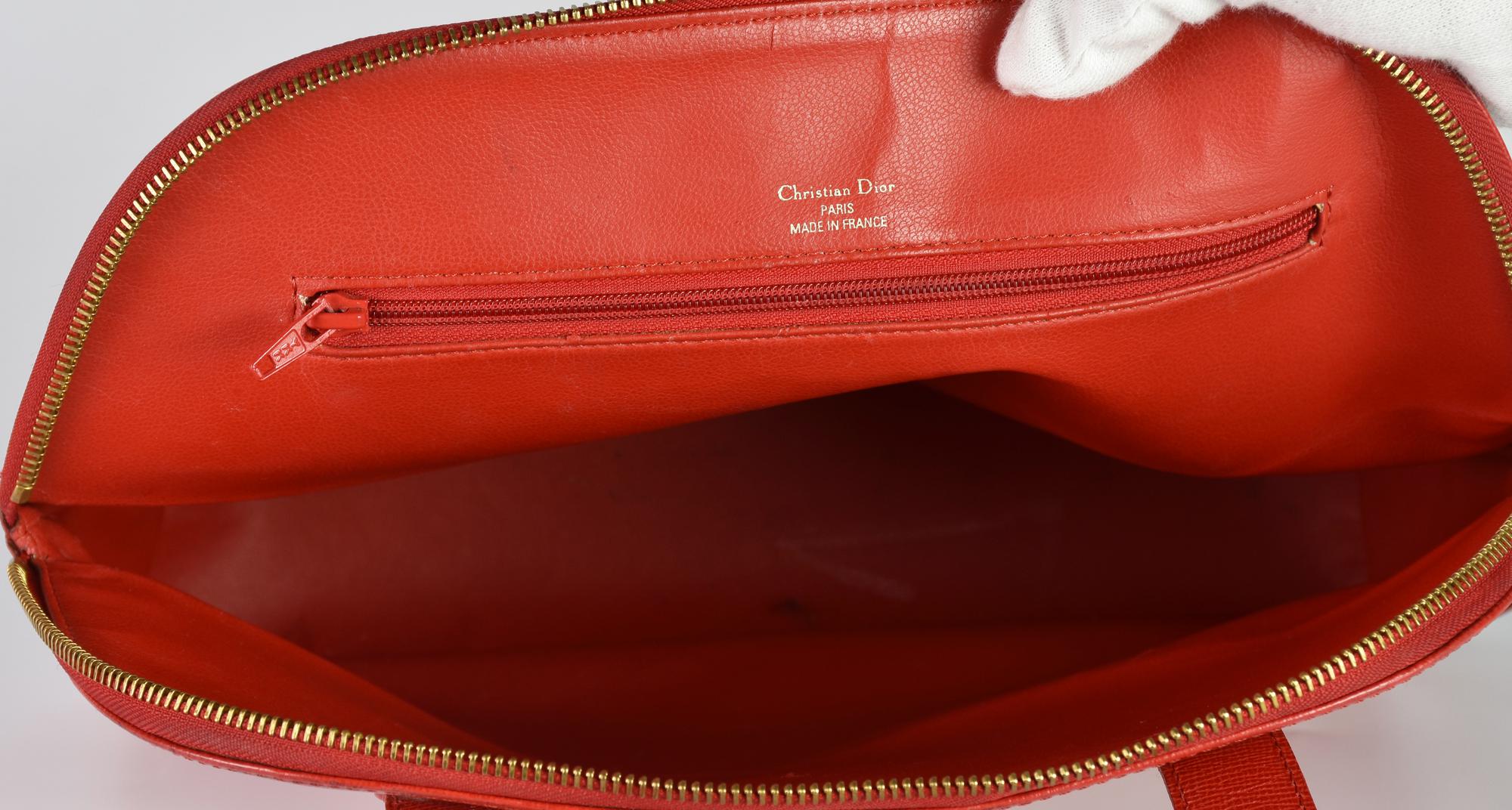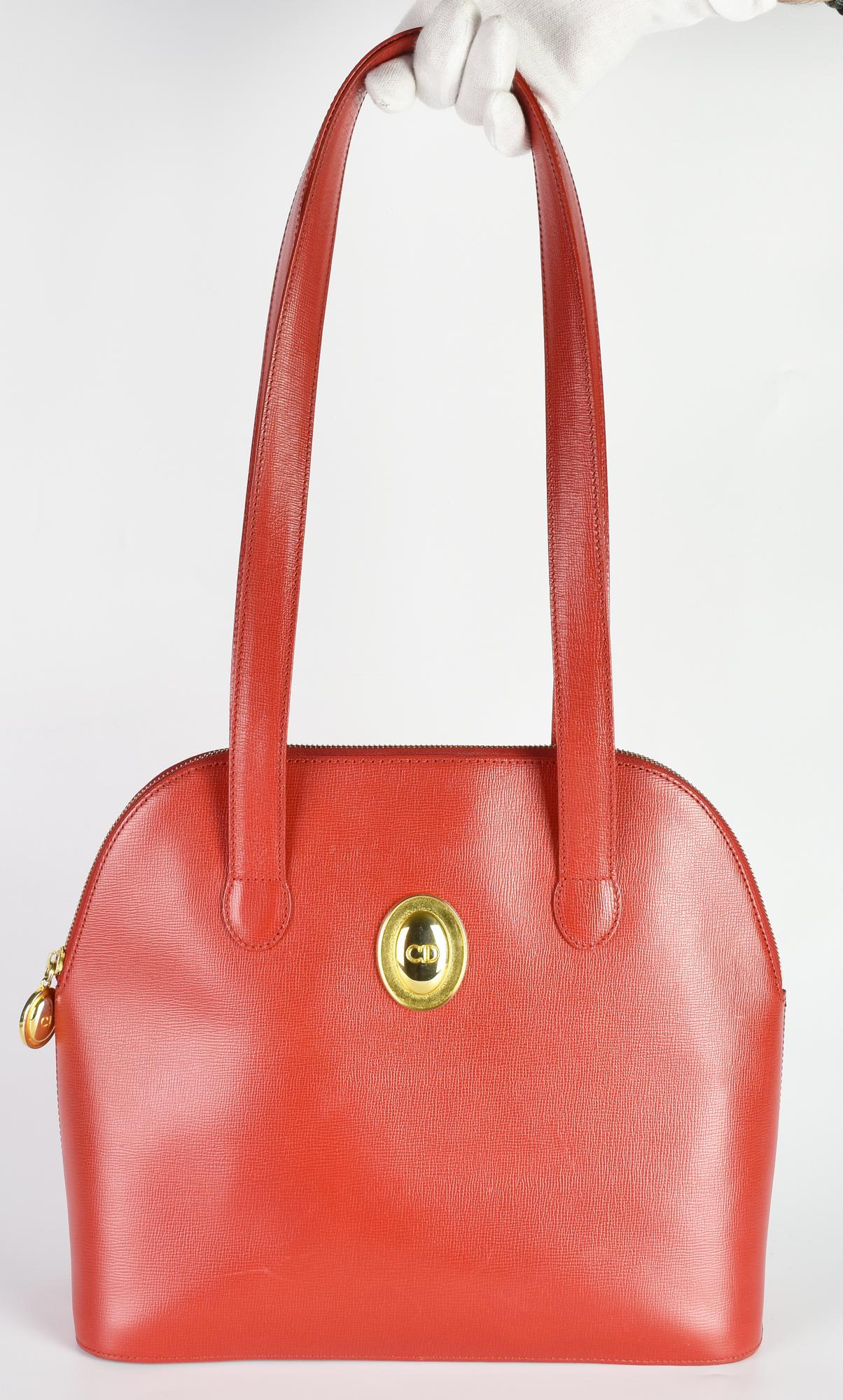 Christian Dior VINTAGE BAG DESCRIPTION: Red leather shoulder bag with double...