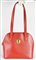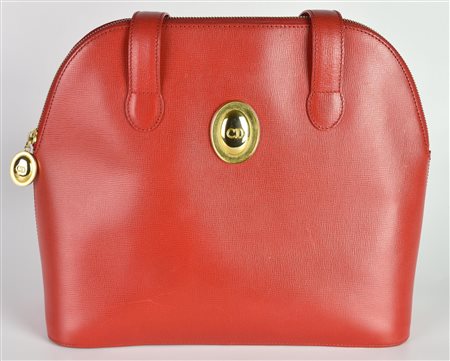 Borsa a spalla in pelle rossa martellata con doppio manico. Chiusura con cerniera. Interno in pelle liscia organizzato in un unico vano con taschino laterale con cerniera. Medaglione CD dorato emblematico della Maison, ripreso come tiretto della cerniera. Hardware in metallo dorato. Cm 31x27x11. Altezza coi manici cm 59. Accompagnata da garanzia. Prodotto in Francia. Lievissimi segni d'uso che non compromettono le ottime condizioni generali. Ben conservata.