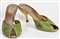 Sandali open toe in pitone con tacco scultura dorato. Tacco 8,50 cm. Taglia 35 IT. Prodotto in Italia. Discretamente conservati.