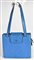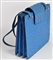 Borsa in pelle di struzzo azzurra a tre scomparti e chiusura a soffietto, cm 25x27x6, ampiezza manici cm 27. Marca Laurence, Torino. Ben conservata.