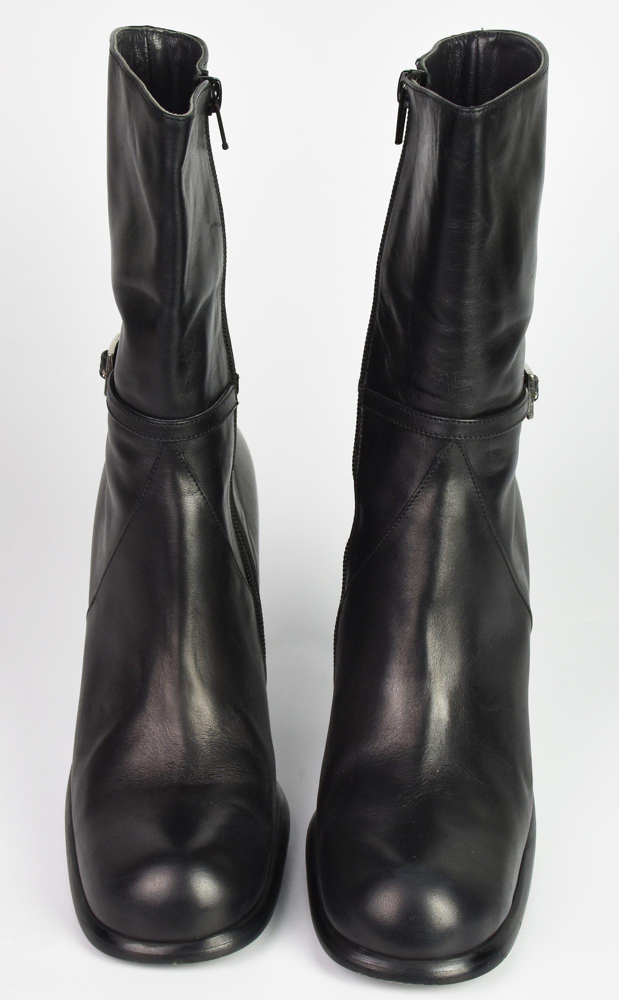 Black calf leather boots with side zipper closure. Leather interiors. Heels 9 cm. Complete with original box. Size 37.5 IT. Made in Italy. Perfectly preserved.