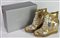 Sneakers con zeppa interna e cerniera laterale. Interni dorati e decorate all'esterno con inserti metallizzati. Con scatola originale. Manca indicazione di taglia, vestono un 37 IT. Prodotte in Italia. Ben conservate.