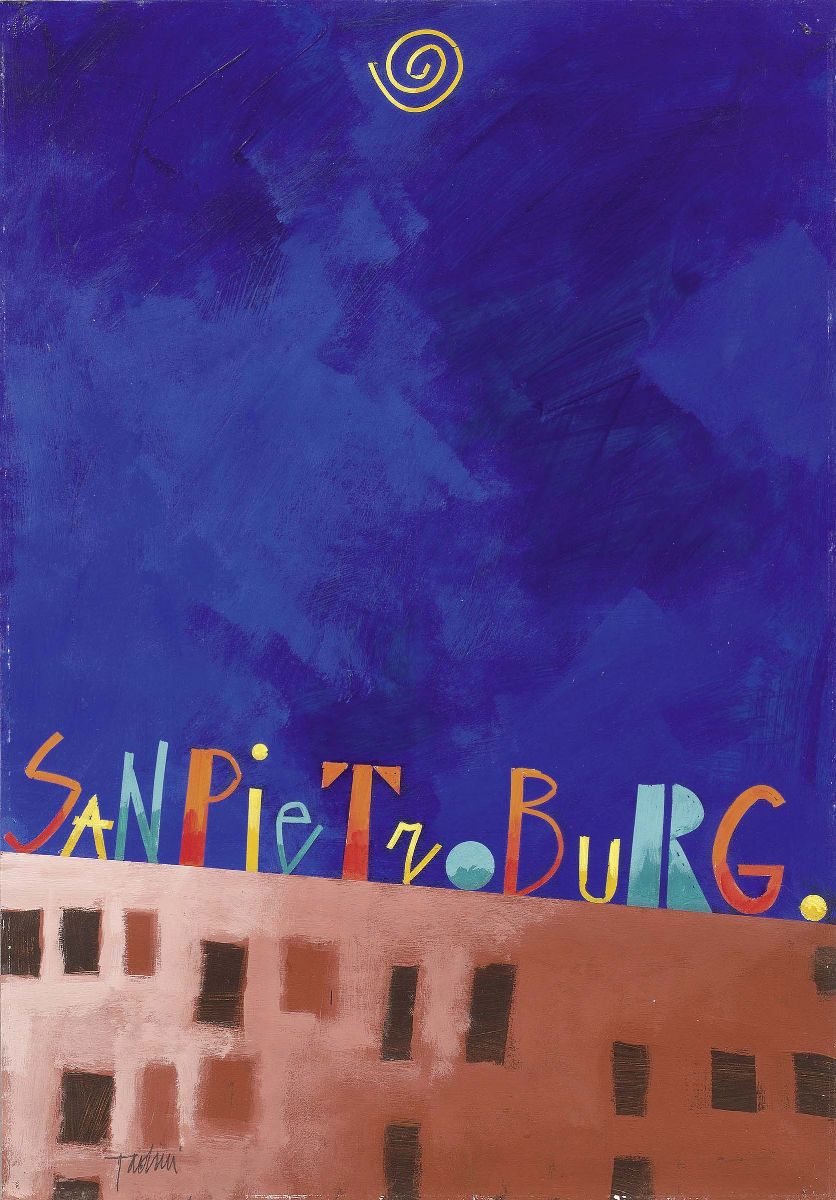 Emilio Tadini (Milano, 1927 - 2002) San Pietroburgo Acrilico su cartoncino...
