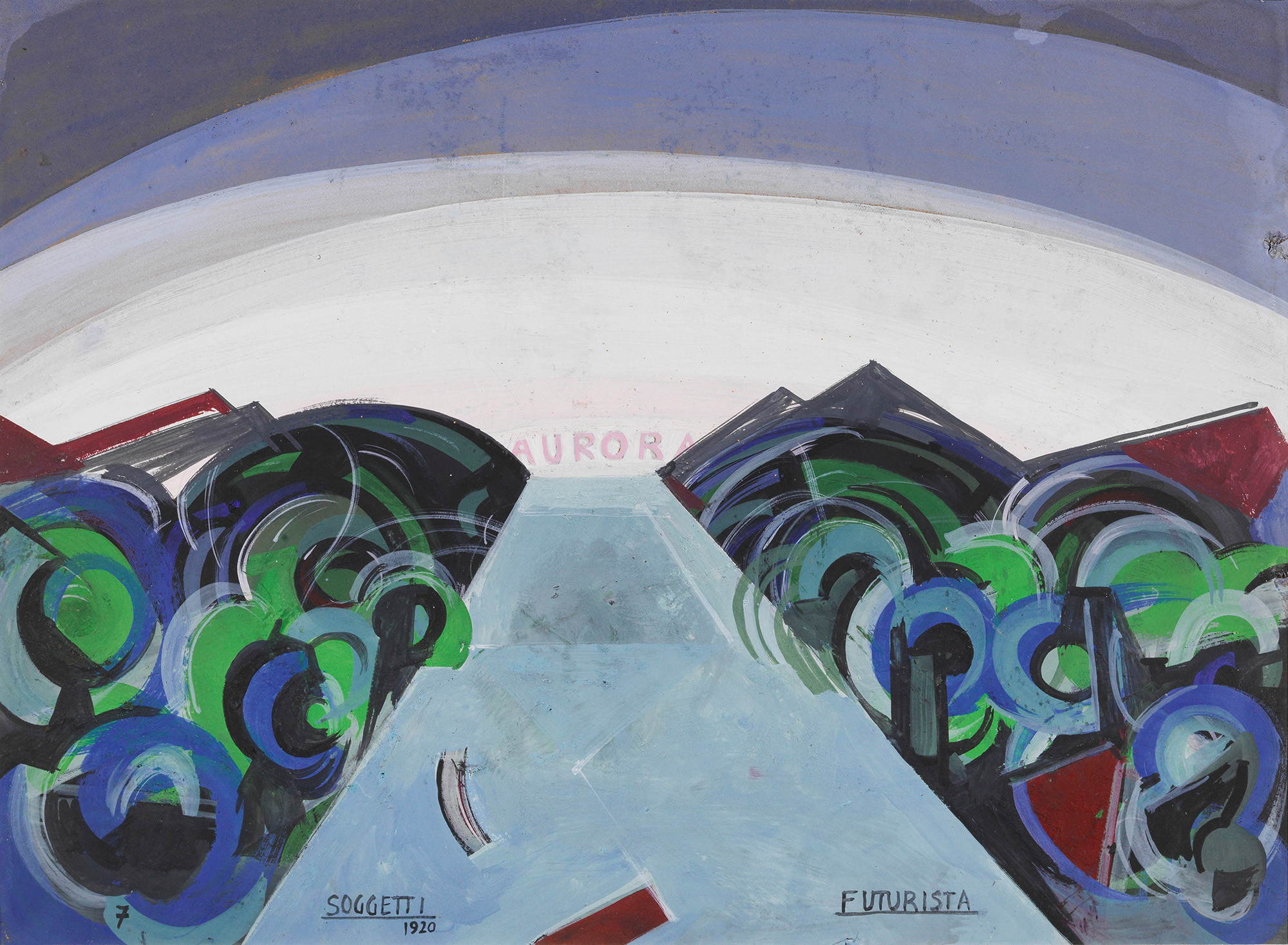 Firma e data in basso al centro: Soggetti / Futurista / 1920.