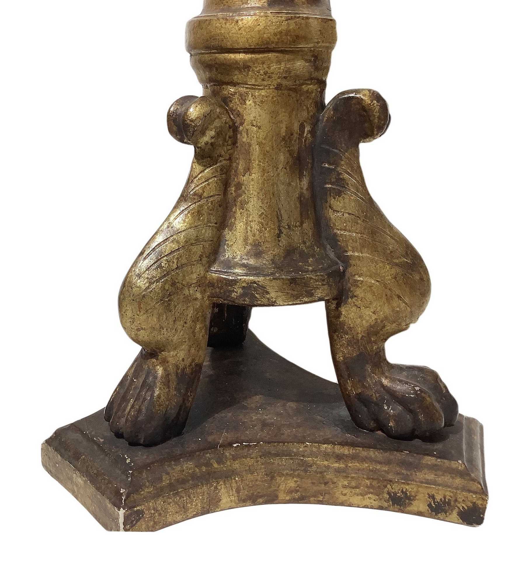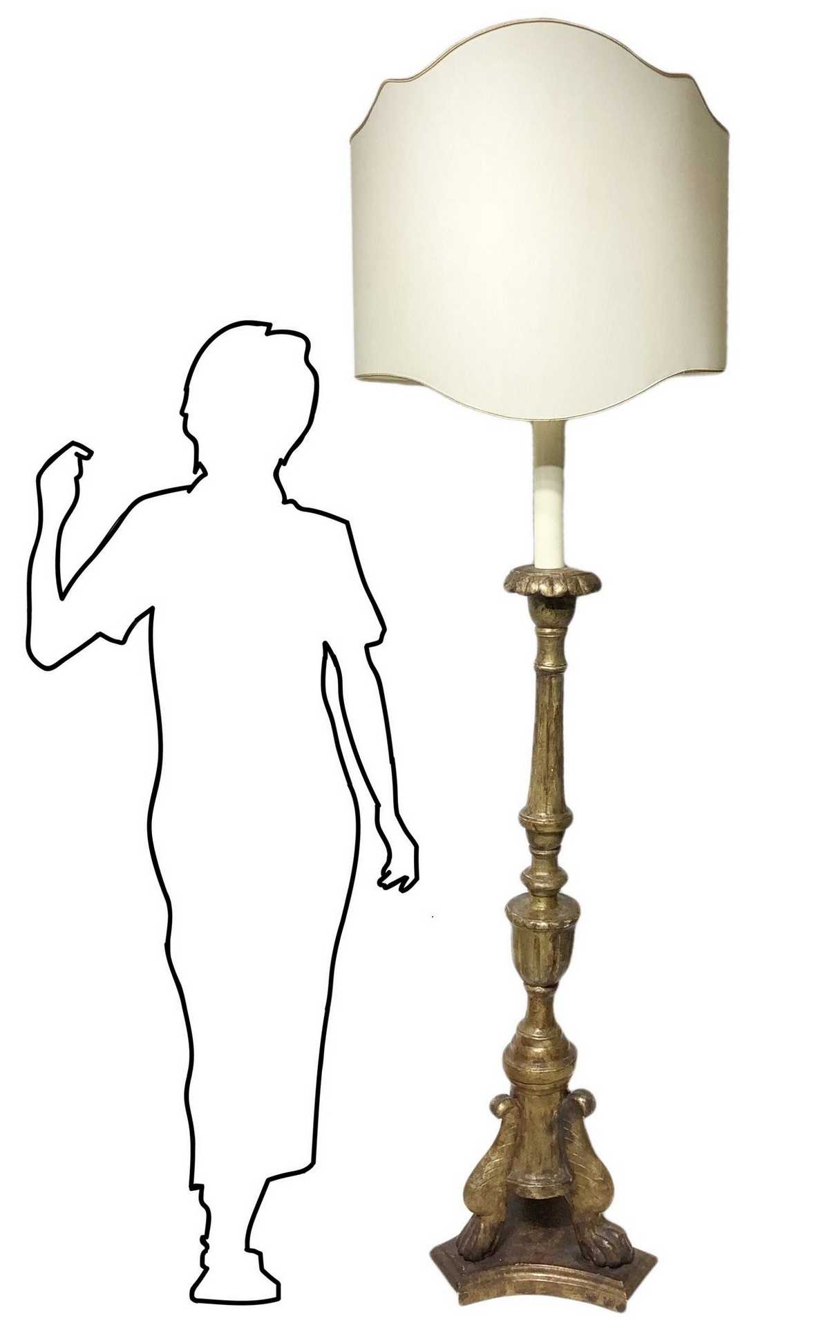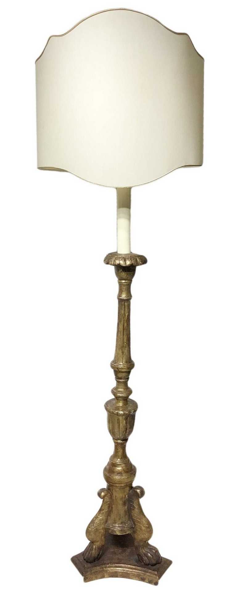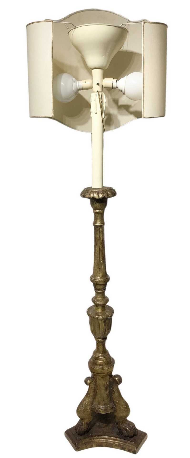 Candeliere da terra in legno dorato con paralume, 19° secolo