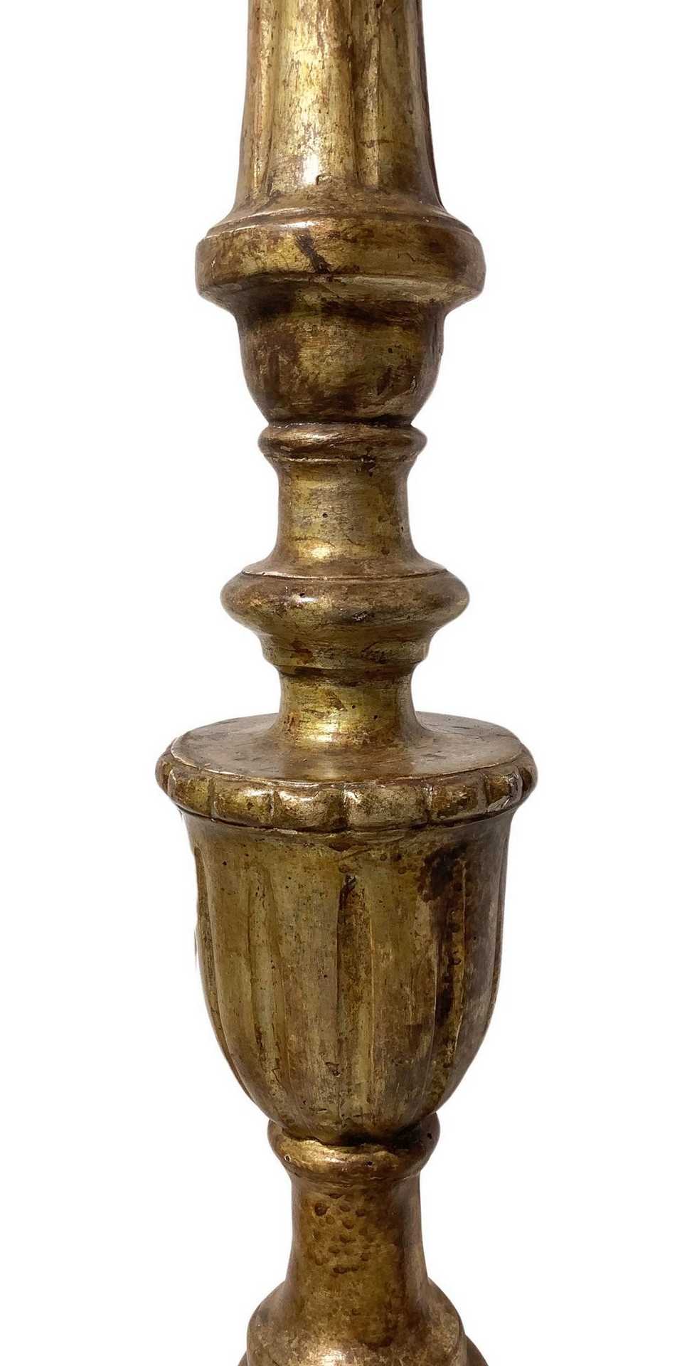 Candeliere da terra in legno dorato con paralume, 19° secolo H cm 200.