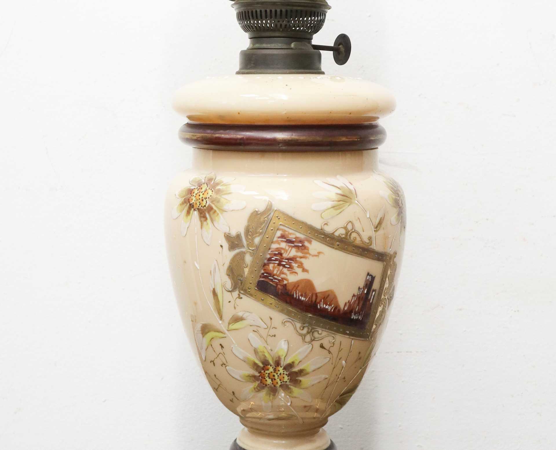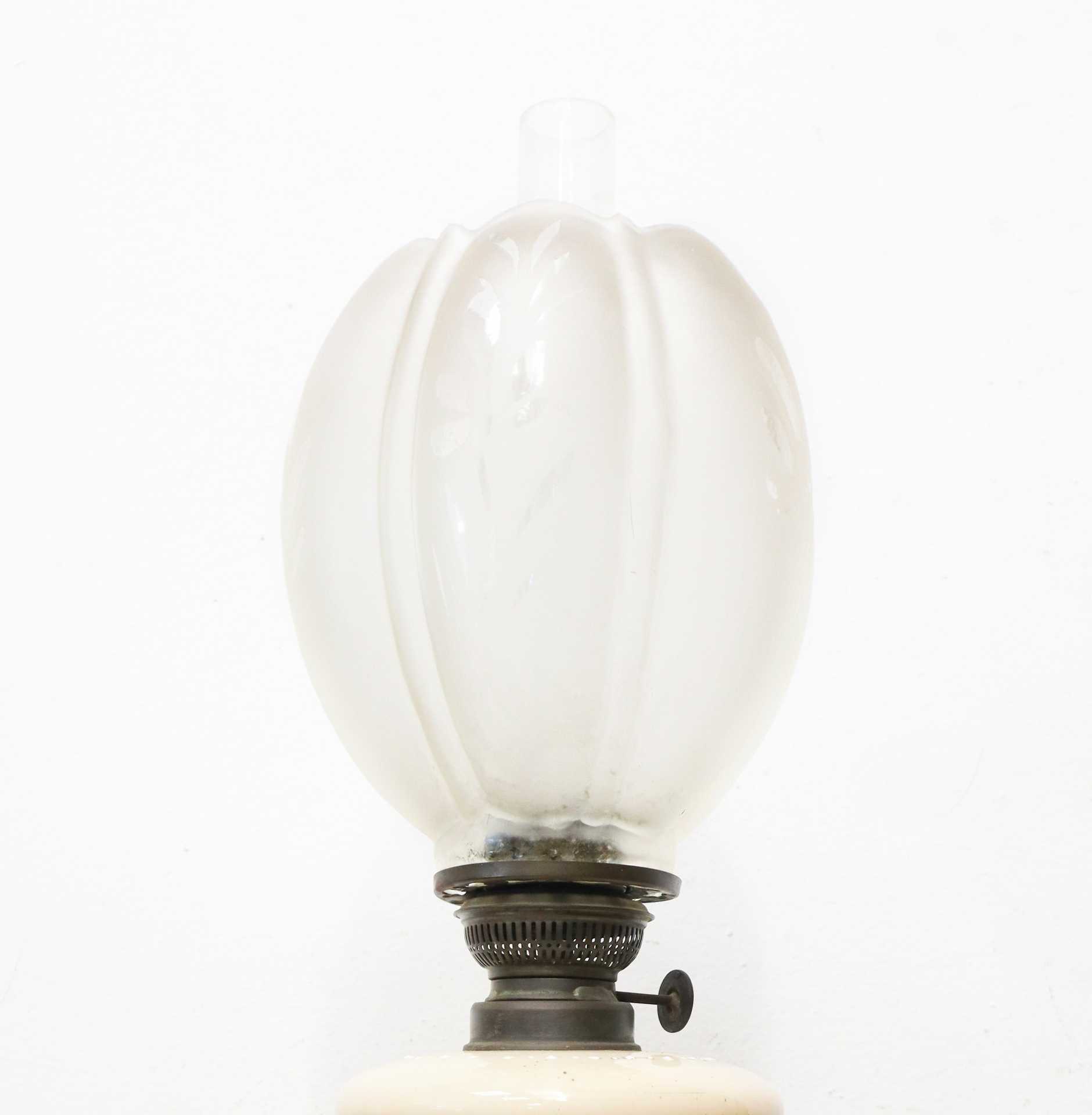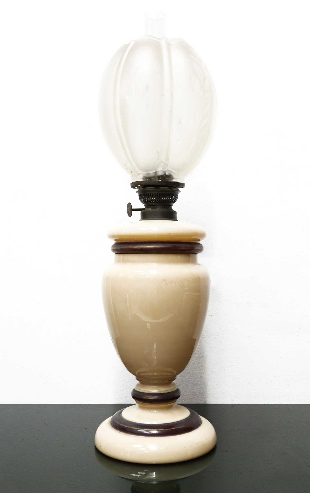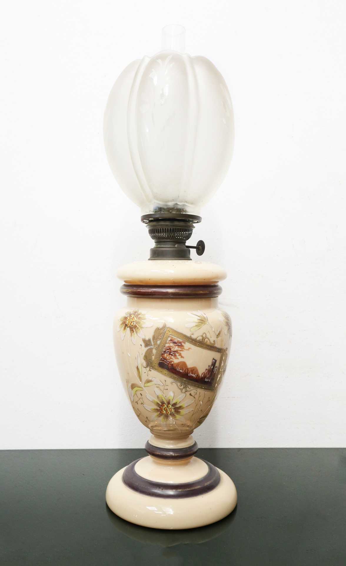 Lotto 17 | Lume a petrolio in opalina beige, 19° secolo