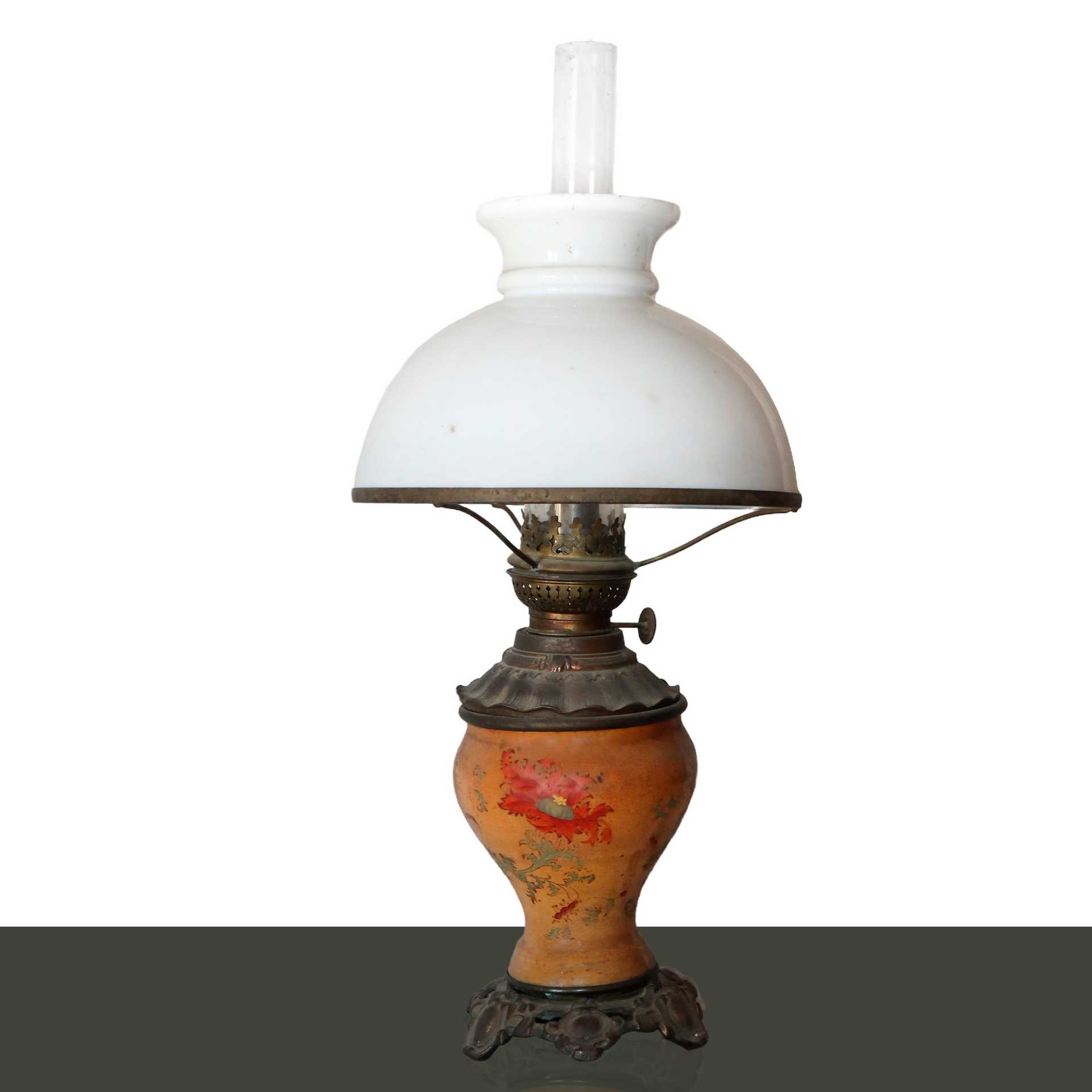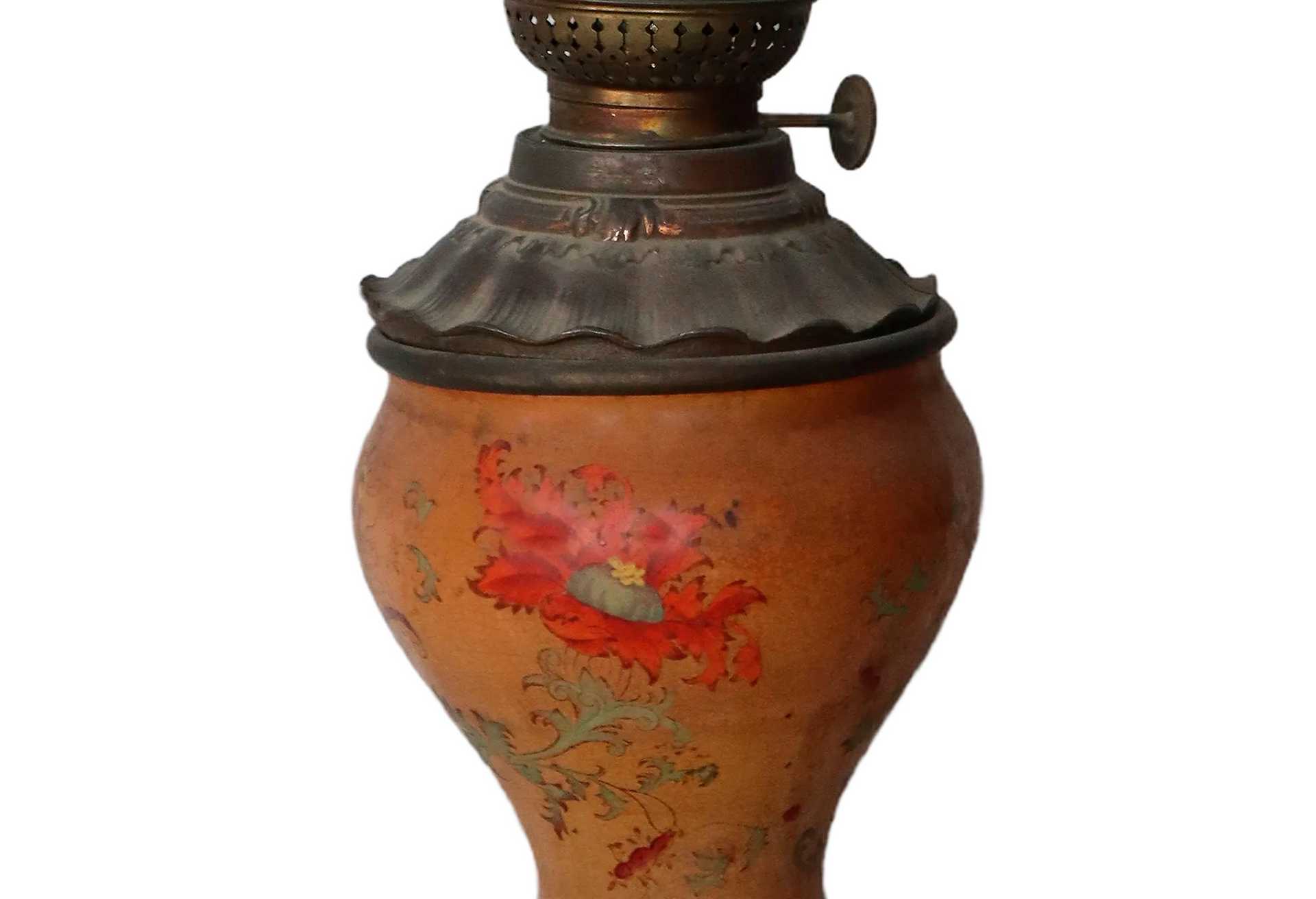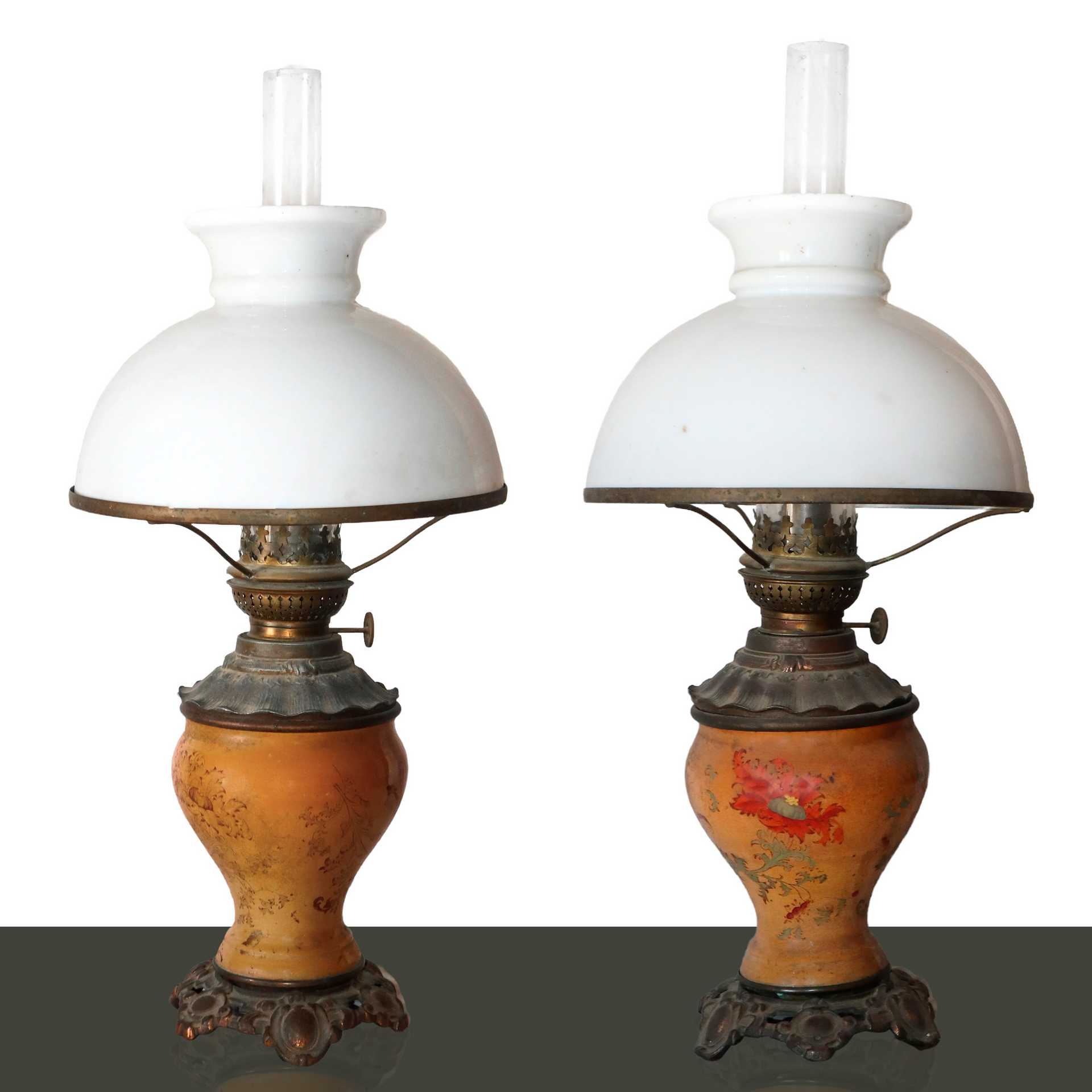 Coppia di lumi a petrolio con disegni floreali , 19° secolo