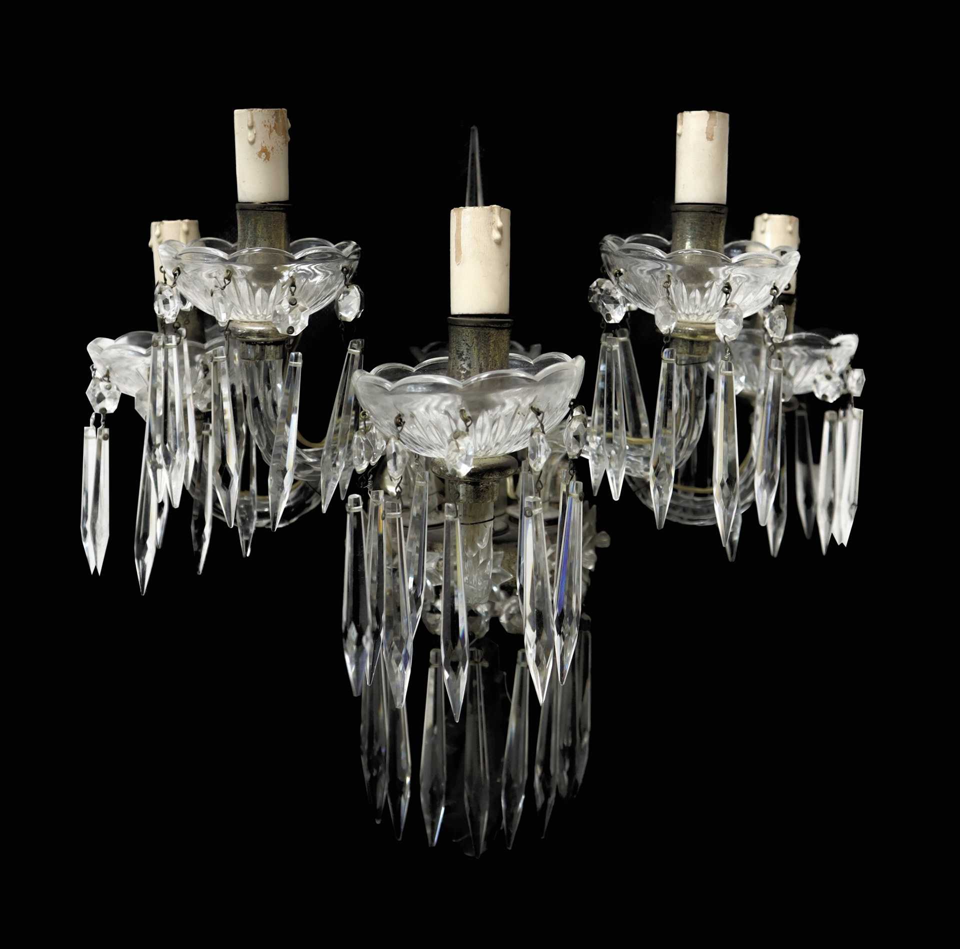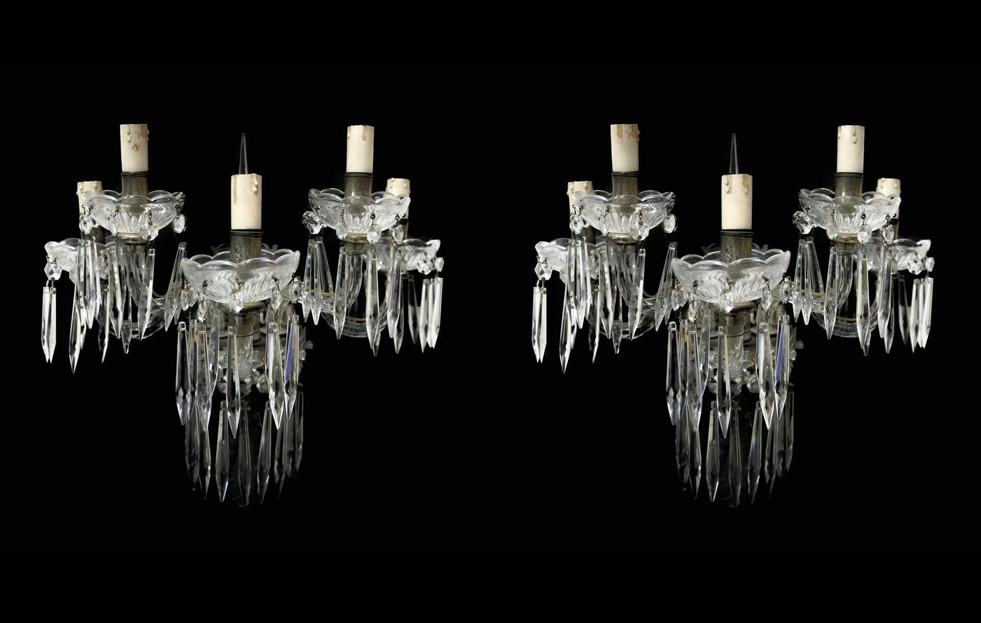 Coppia di appliques in vetro con brindoli a cinque luci molati a mano, 19° secolo