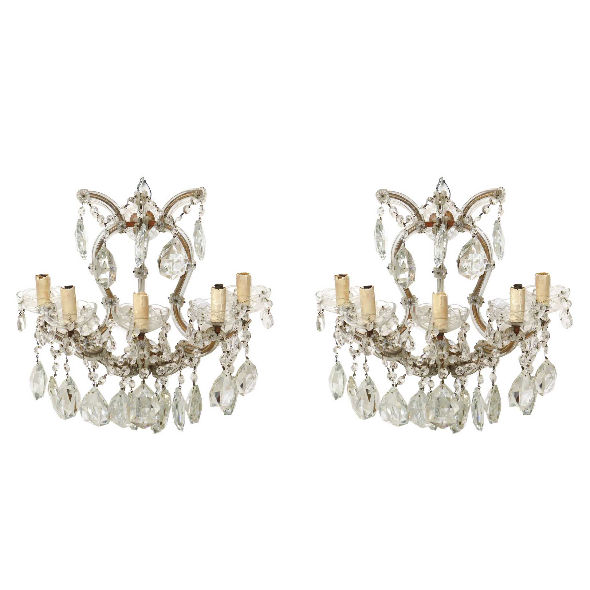 Coppia di appliques in vetro, Maria Teresa, a 5 luci con brindoli, Primi 20° secolo