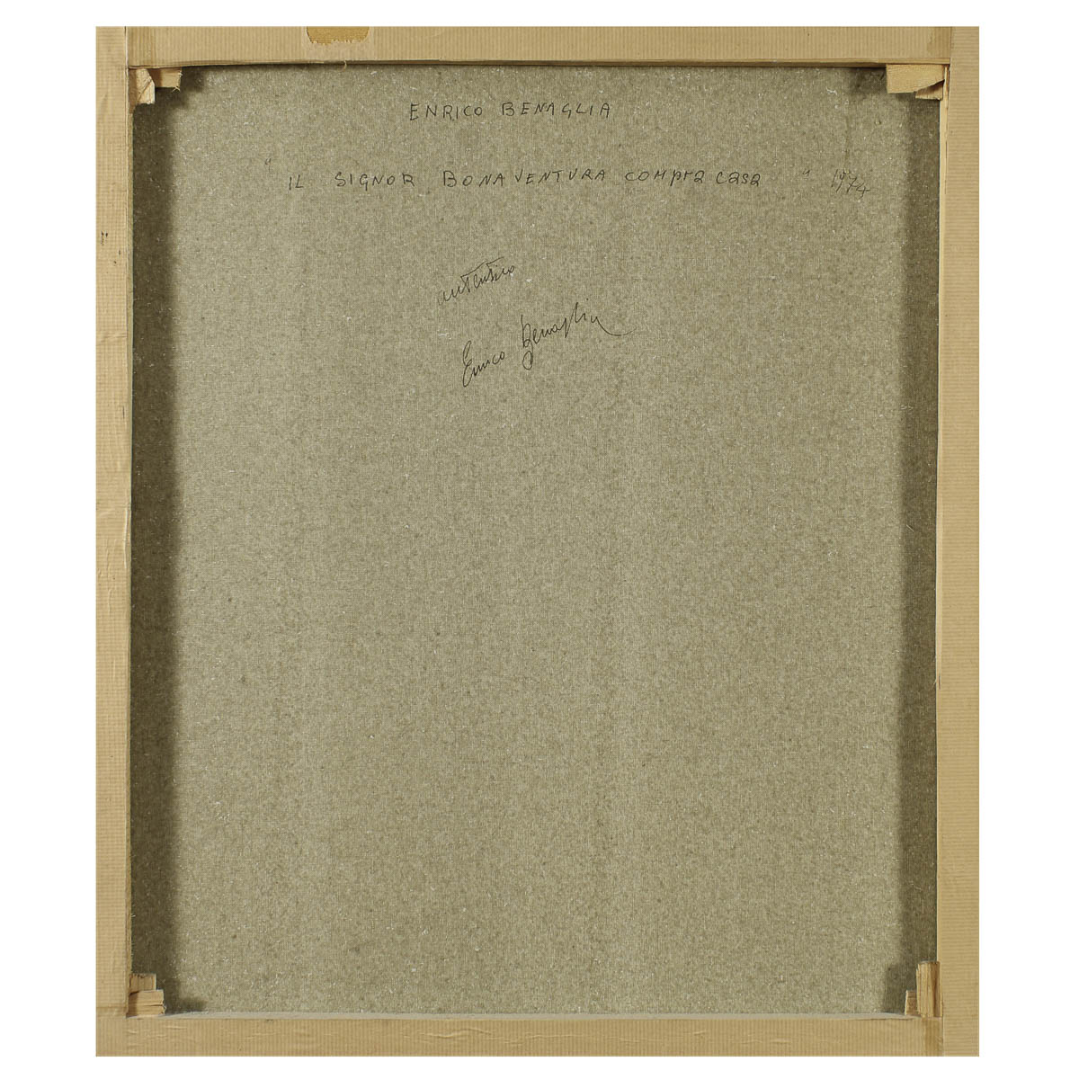 "Il signor Bonaventura compra casa", 1974, olio su tela, firmato e datato in basso a sinistra e sul retro