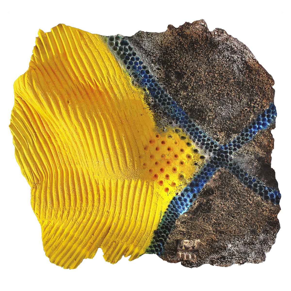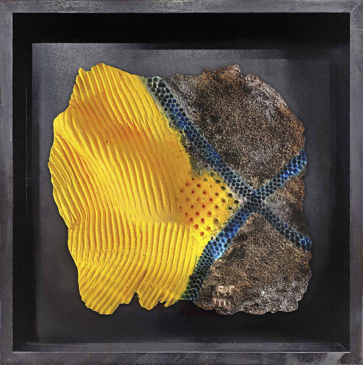 "Mutazioni", 2015, terracotta patinata, timbro e firma in basso, entro cornice