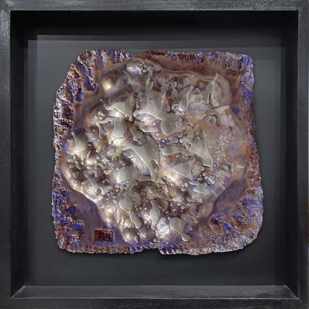 "Mutazioni", 2017, terracotta patinata, timbro e firma in basso a sinistra, entro cornice