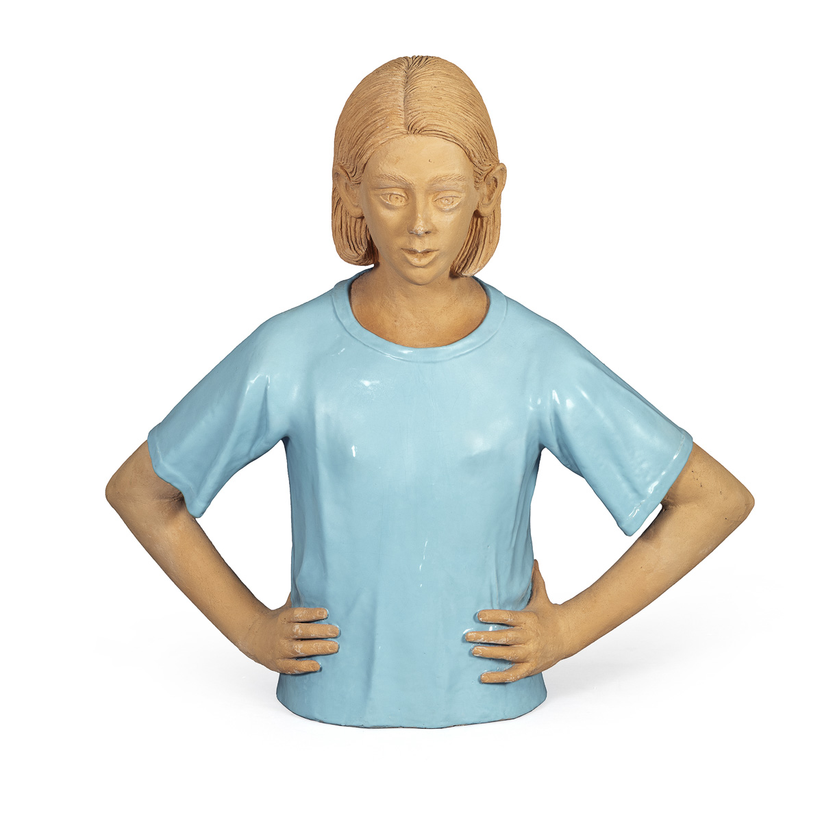 "Busto femminile", scultura in terracotta e terracotta smaltata, firmata