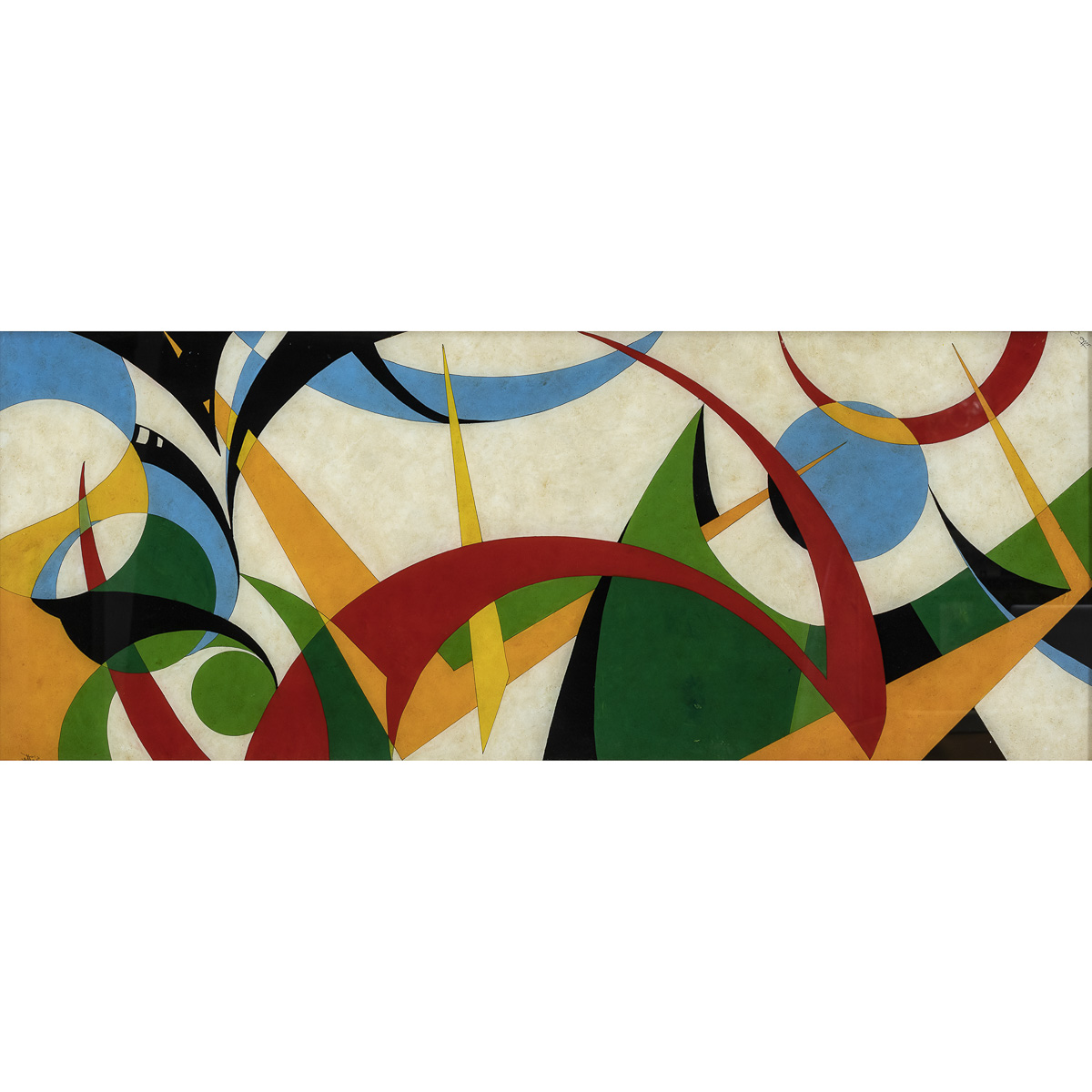 "Senza titolo", dipinto sottovetro, firmato in basso a sinistra, entro cornice