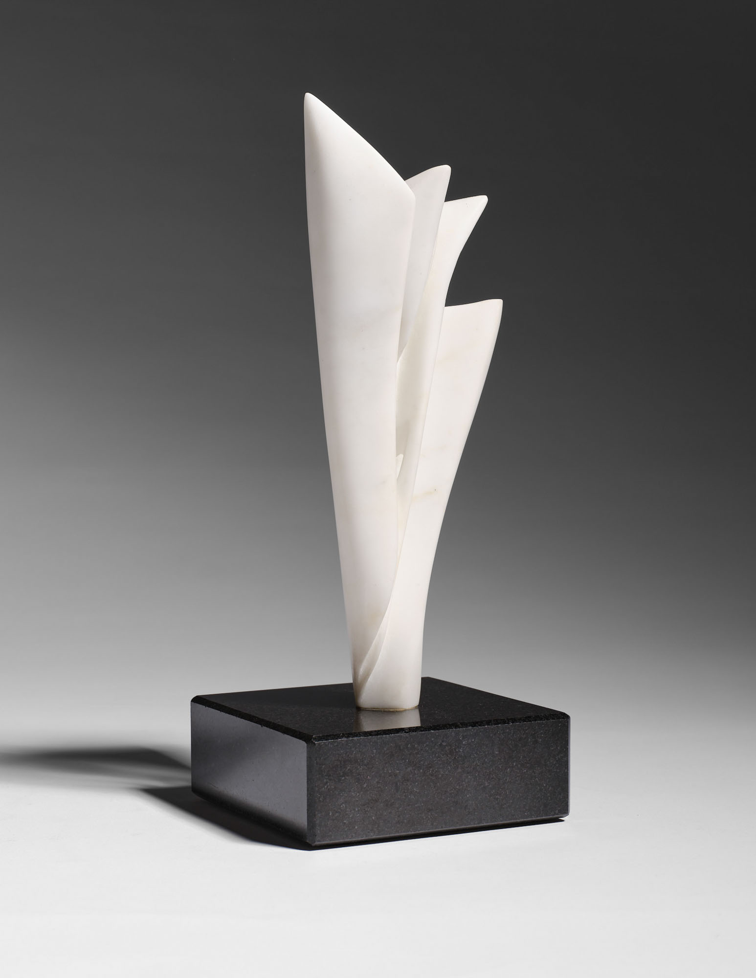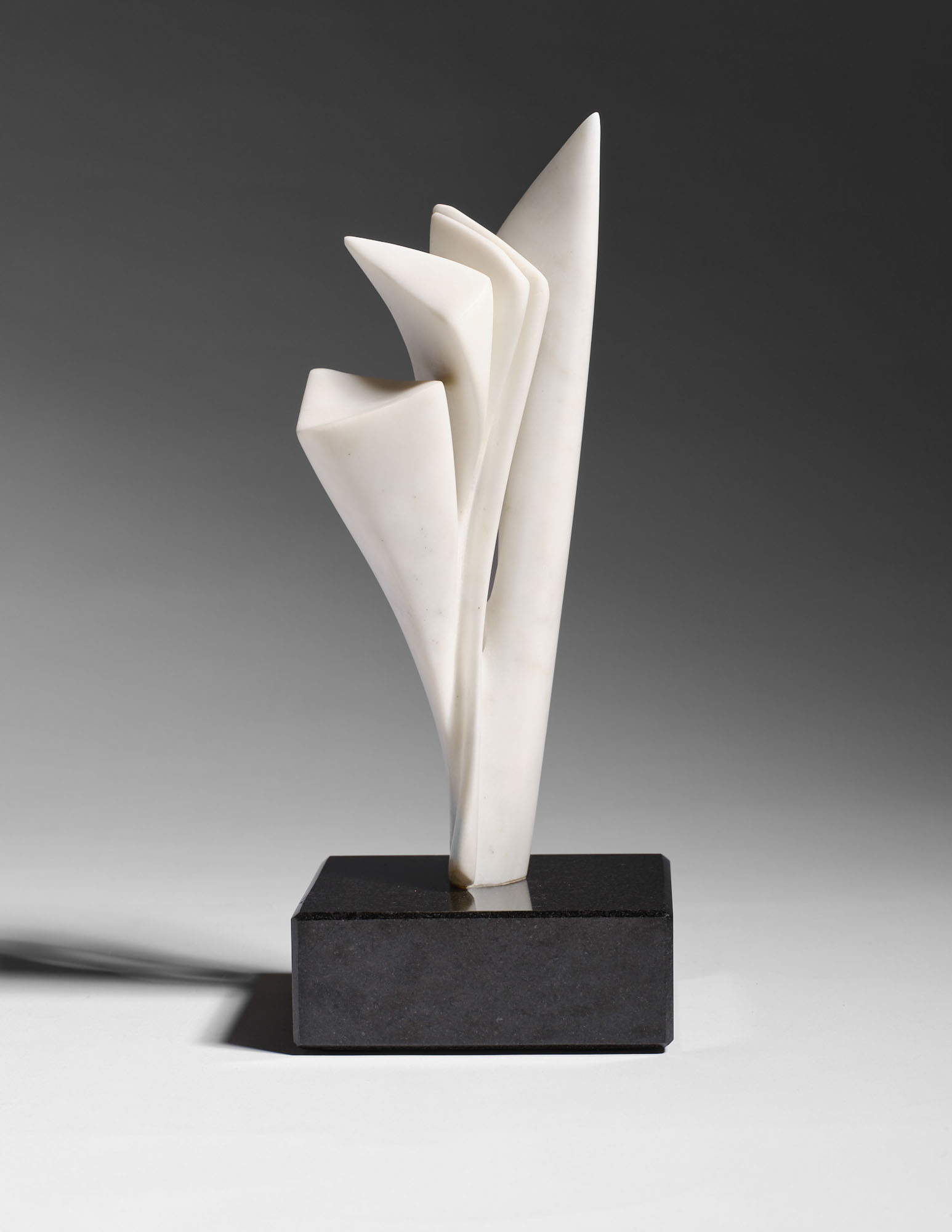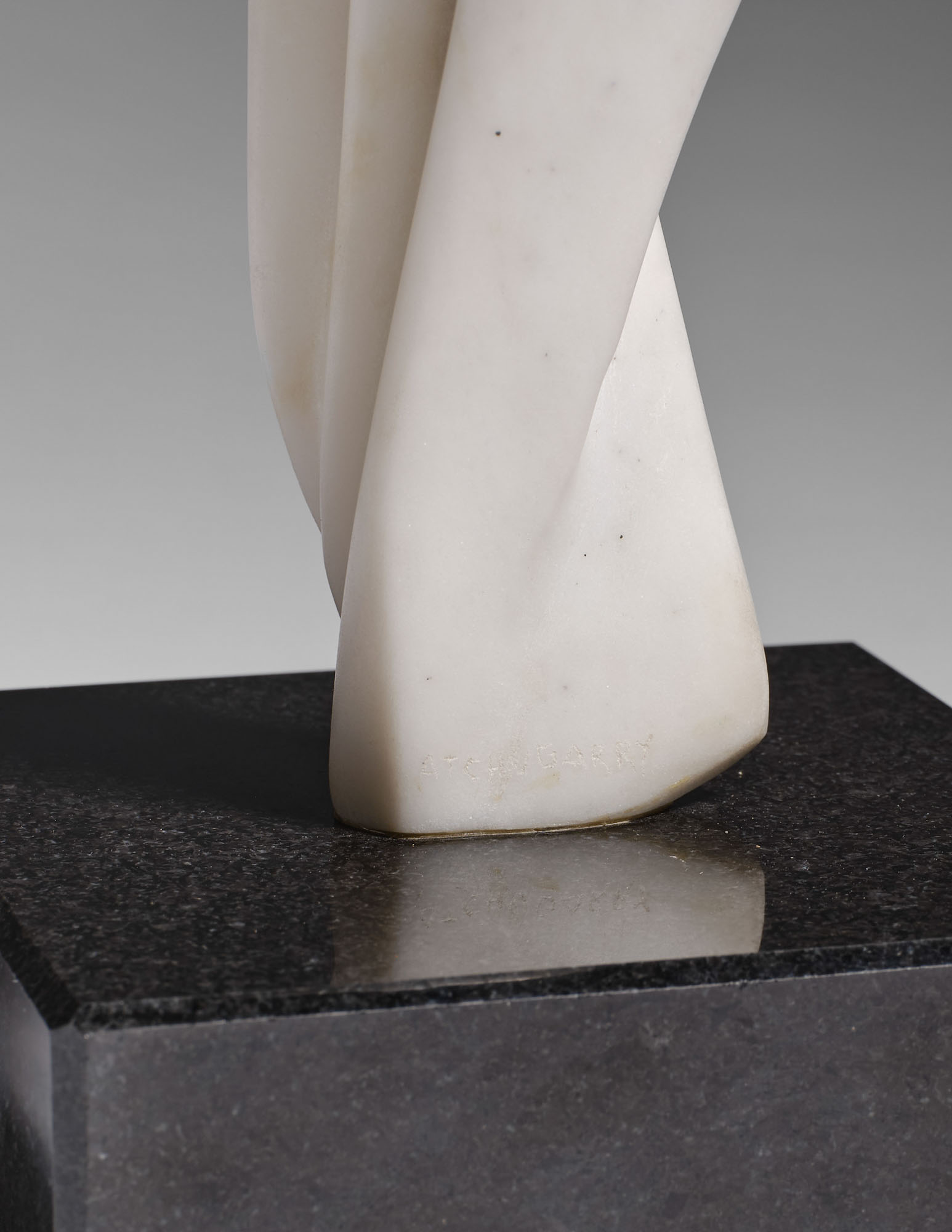 Scultura in marmo di Carrara, base in marmo nero, cm. 30 x 13 x 9 (base cm. 5,5 x 14,5 x 14,5)
