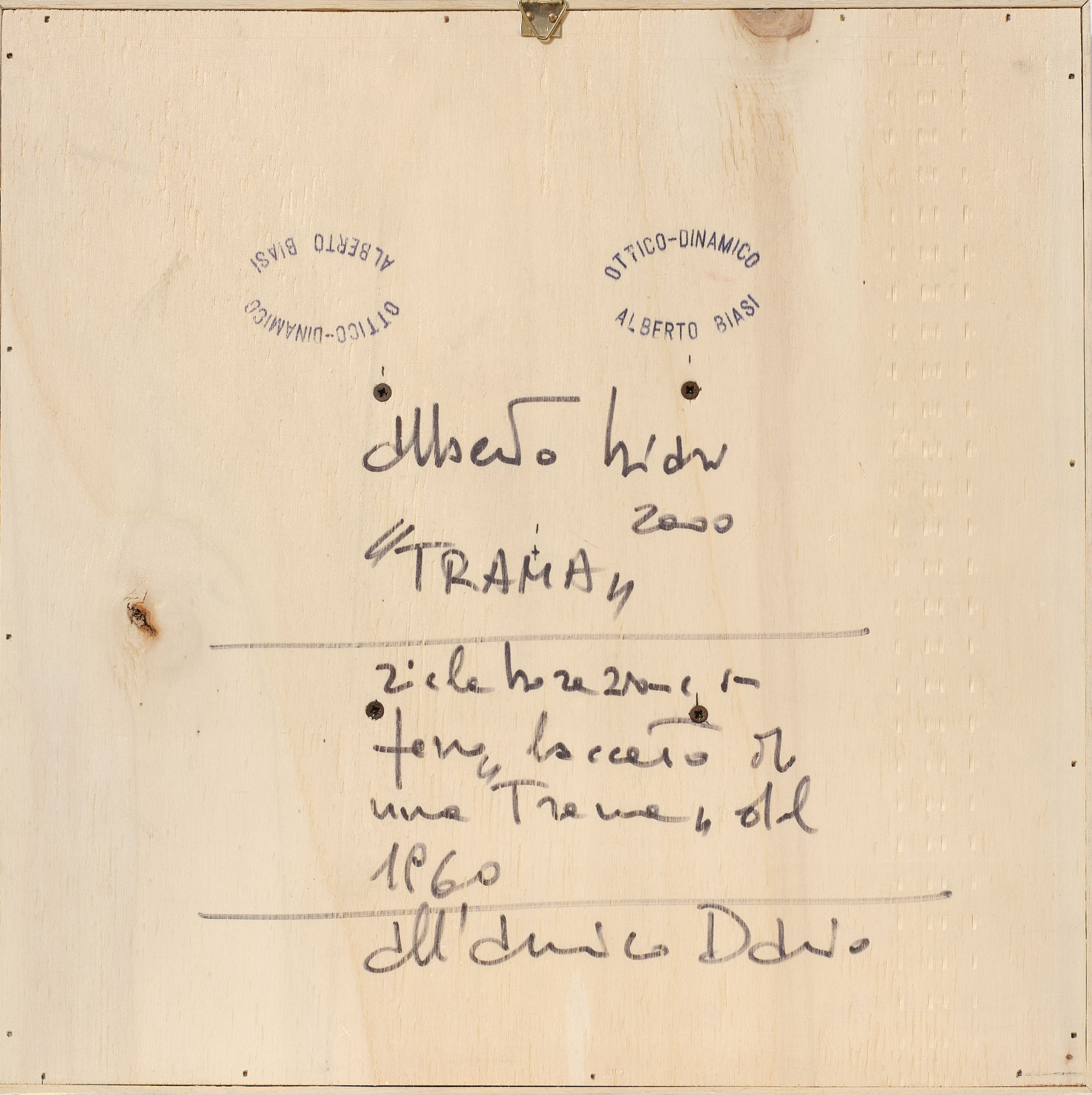 Autentica dell'artista su fotografia con timbro Archivio Alberto Biasi